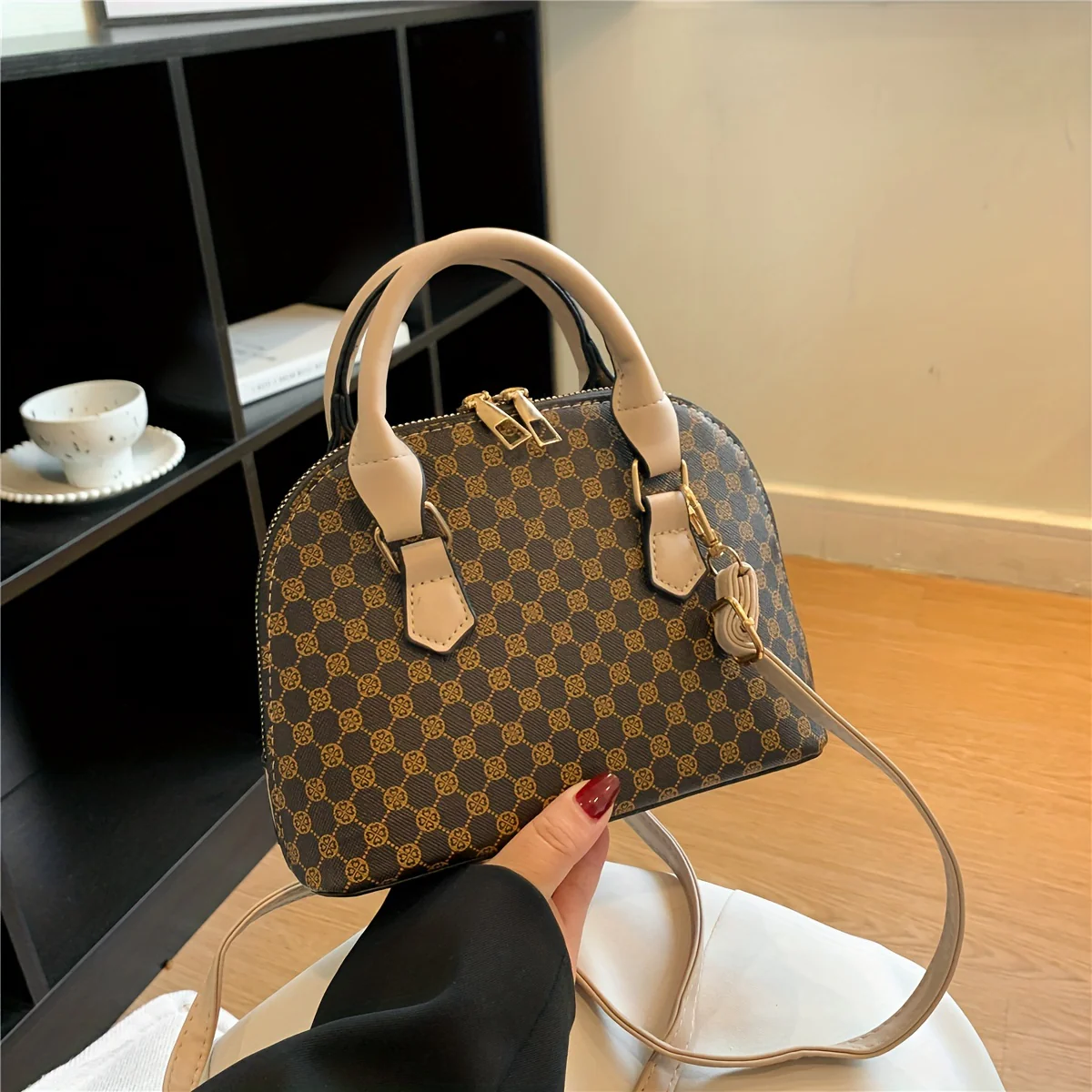 Vintage Geometric Pattern Shell Bag, Classic Zipper Textured Satchel Bag For Women