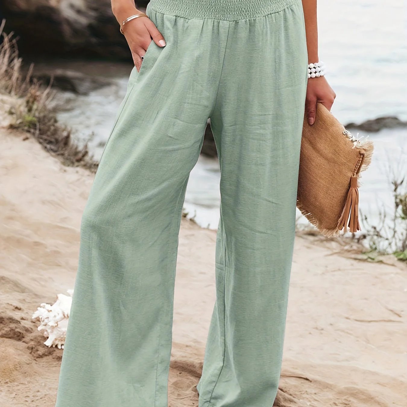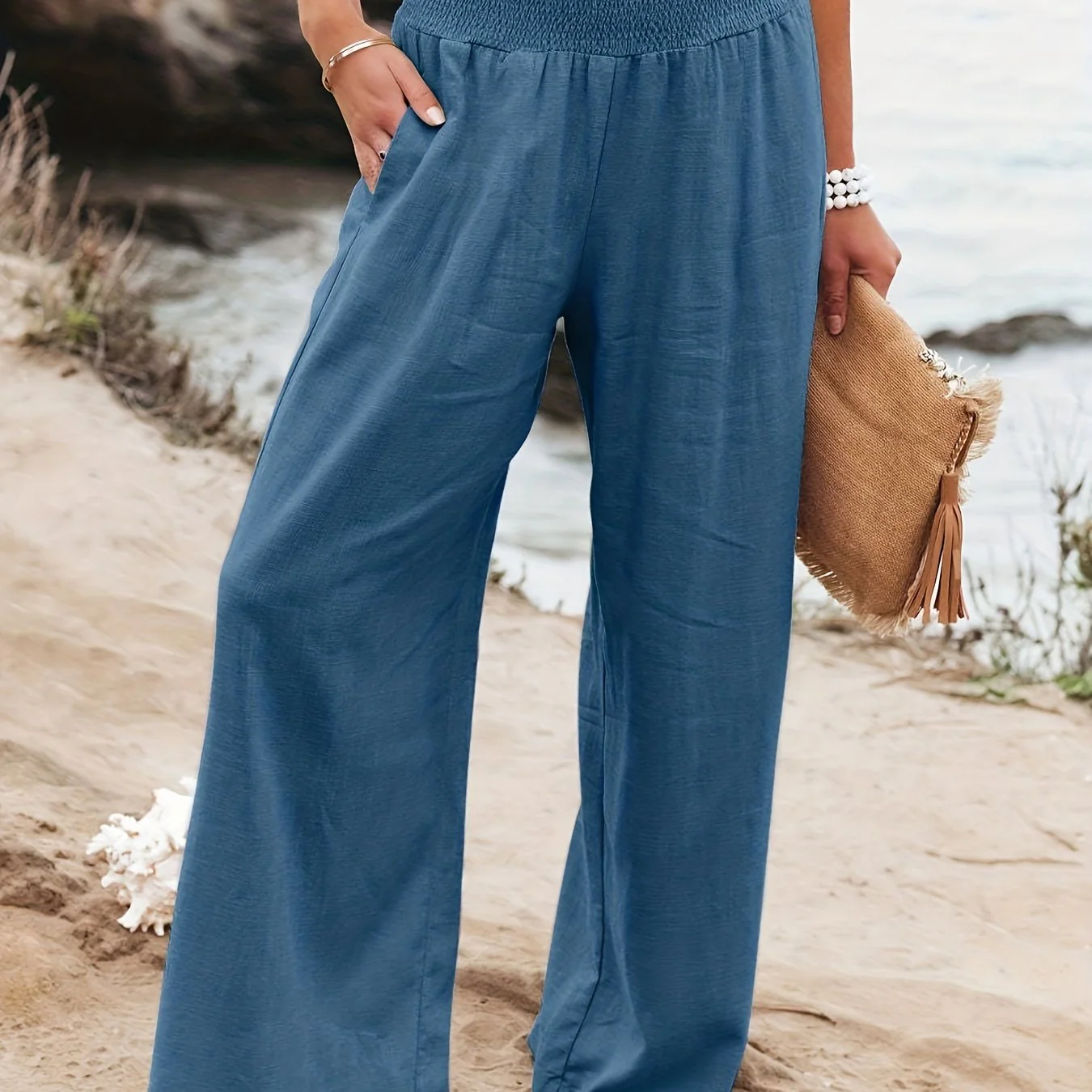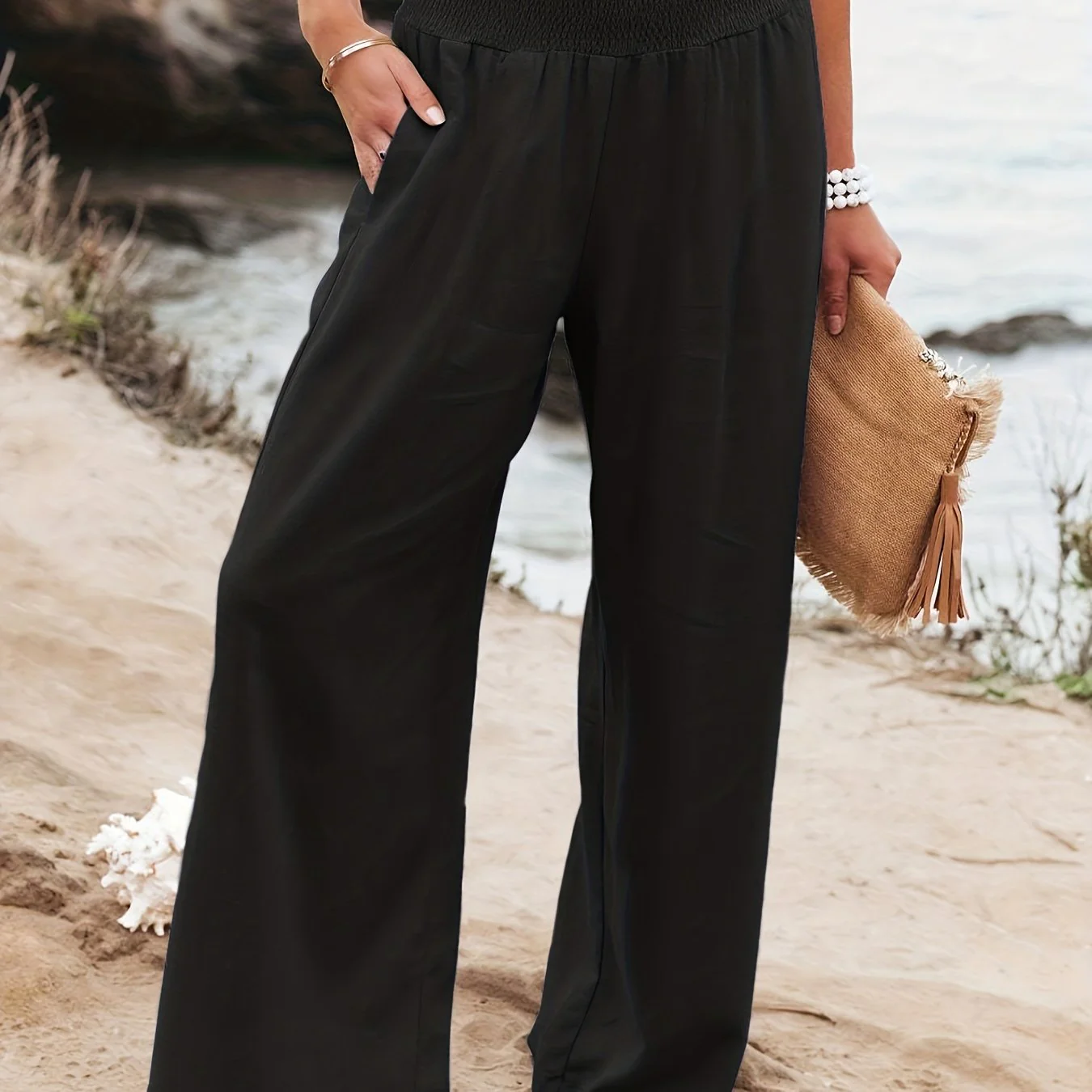 Minimalist Solid Elastic Waist Wide Leg Pants, Casual Loose Pants For Spring & Summer, Women's Clothing