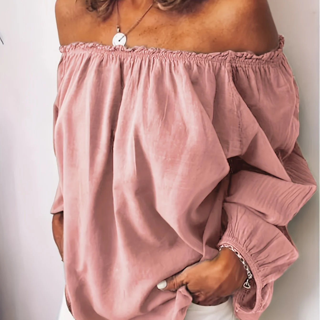 Ruffle Trim Layered Blouse, Sexy Off Shoulder Solid Blouse, Women's Clothing