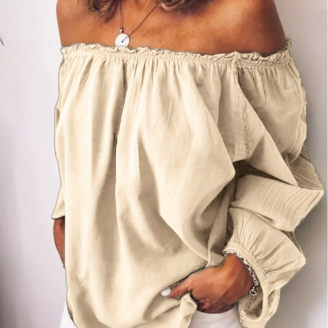 Solid Ruffle Trim Blouse, Casual Loose Long Sleeve Blouse For Spring & Fall, Women's Clothing