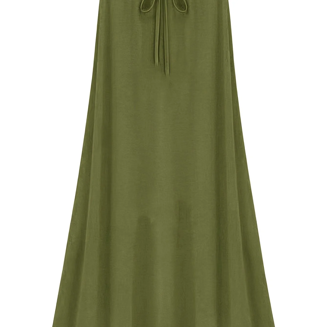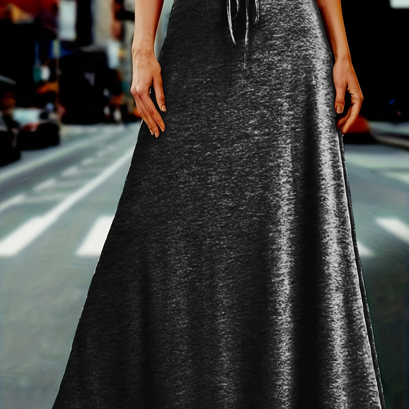 Plus Size Elegant Skirt, Women's Plus Solid Drawstring High Rise Medium Stretch Maxi Skirt