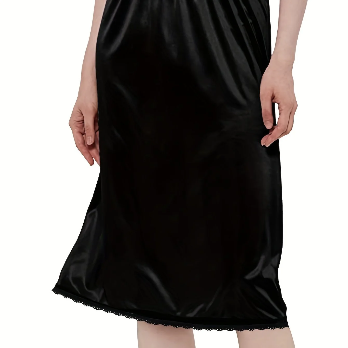 Lace Trim Solid Skirt, Sexy Mid Rise Stretch Half Slips Petticoat, Women's Underwear & Shapewear