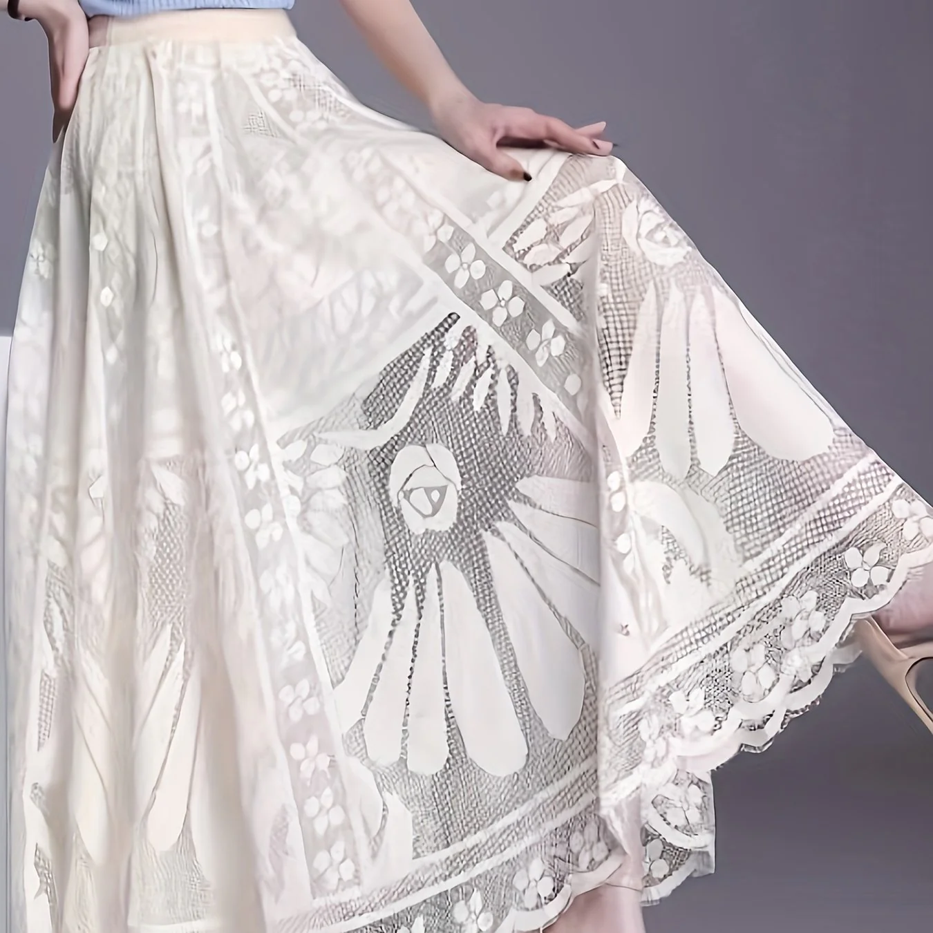 Scallop Trim High Waist Lace Skirt, Elegant Ankle Length Skirt For Spring & Summer, Women's Clothing