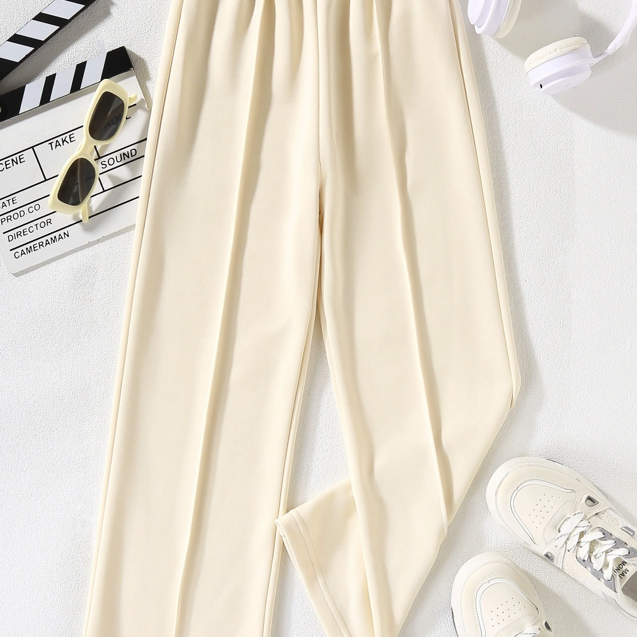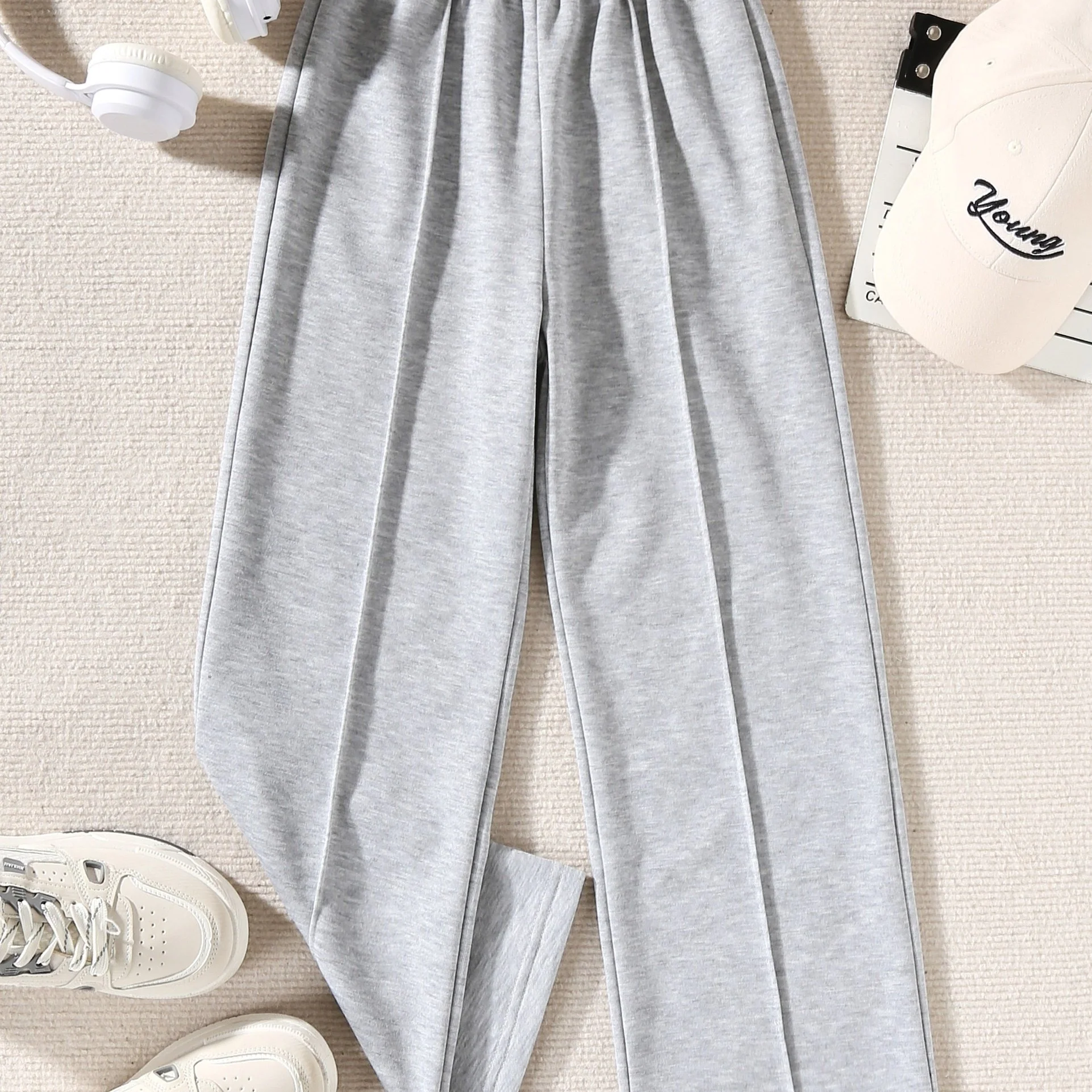 Girls Fashion Solid Color Casual Sports High Waist Wide Leg Pants Straight Leg Pants