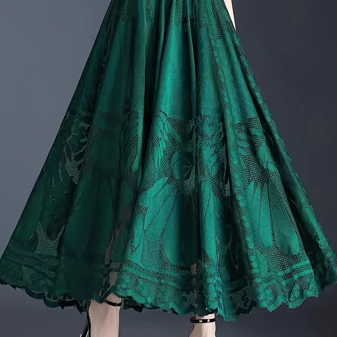 Scallop Trim High Waist Lace Skirt, Elegant Ankle Length Skirt For Spring & Summer, Women's Clothing