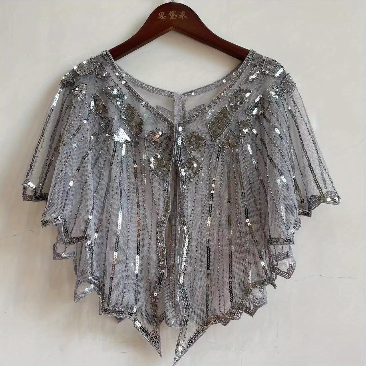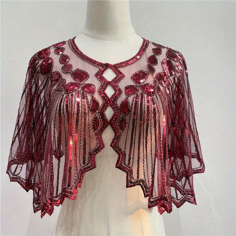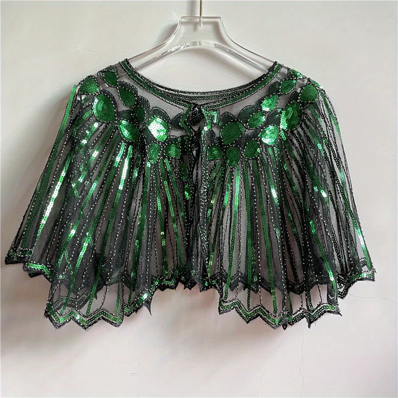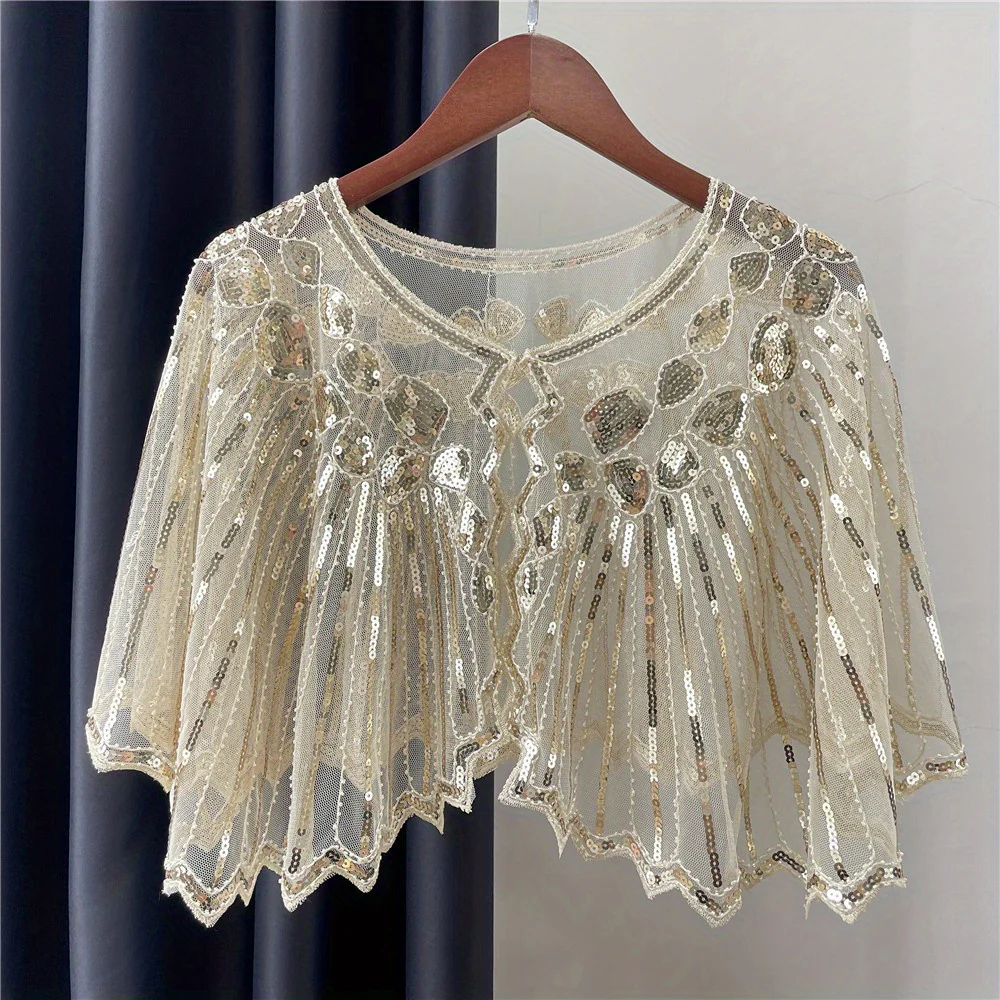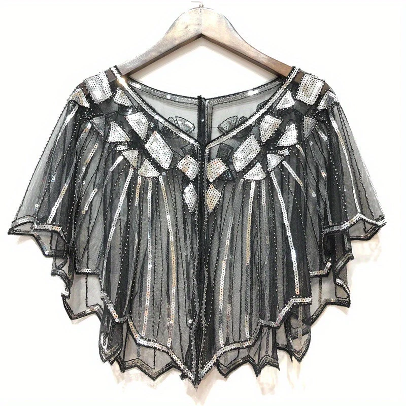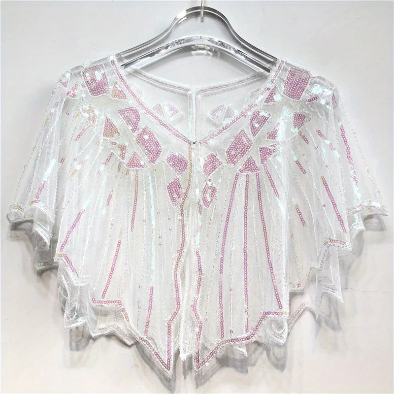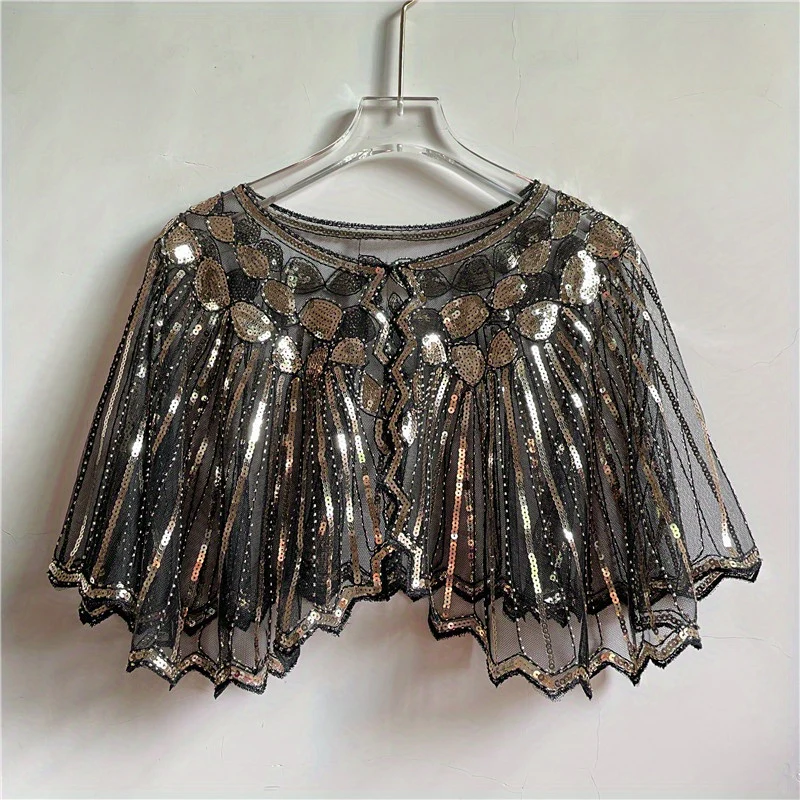 Vintage Punk Shawl Sequin Beaded Short Cape Elegant Mesh Breathable Short Wrap Women Dress Accessories