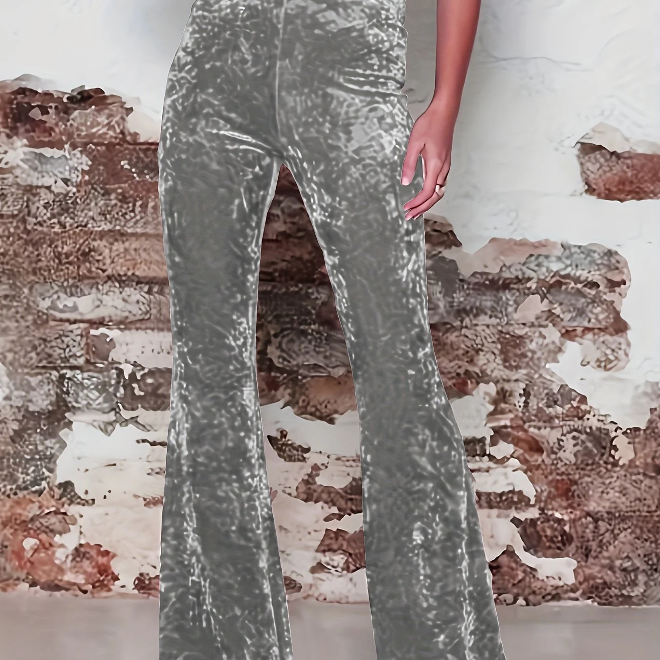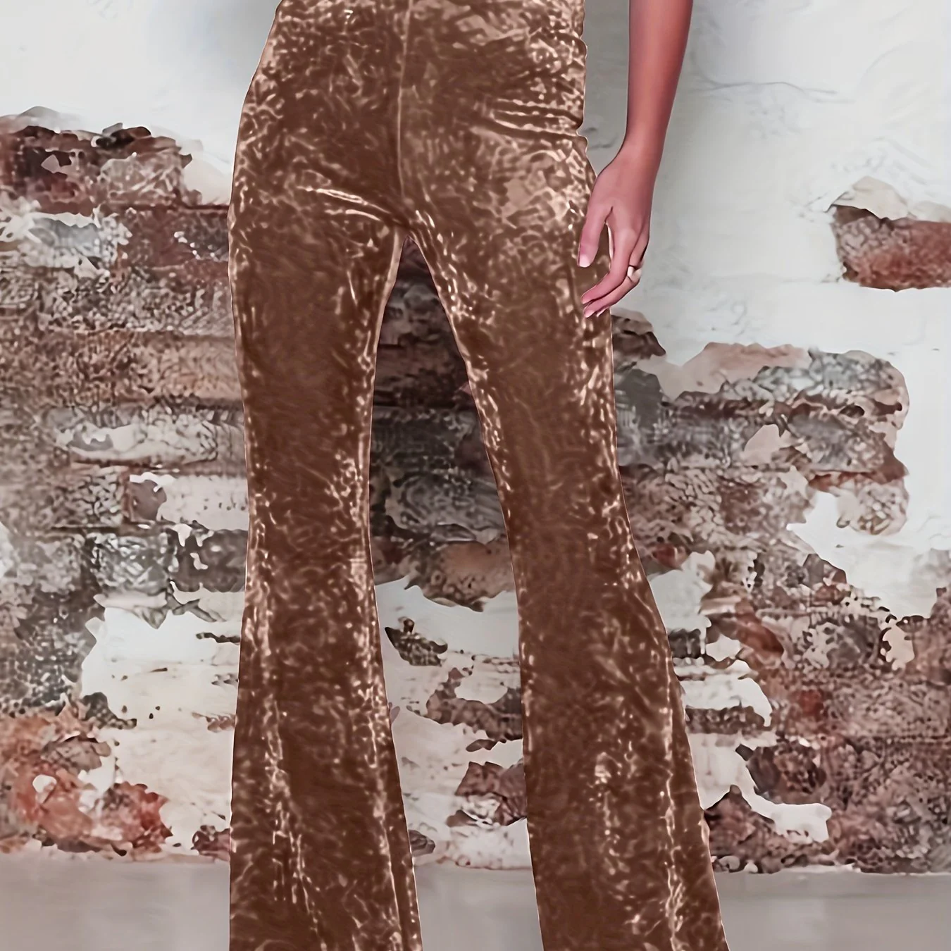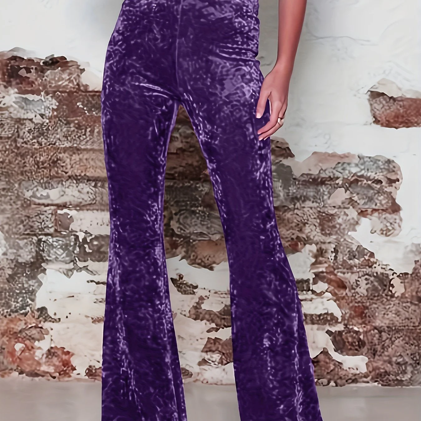 High Waist Solid Velvet Pants, Boho Every Day Flare Leg Pants For All Season, Women's Clothing