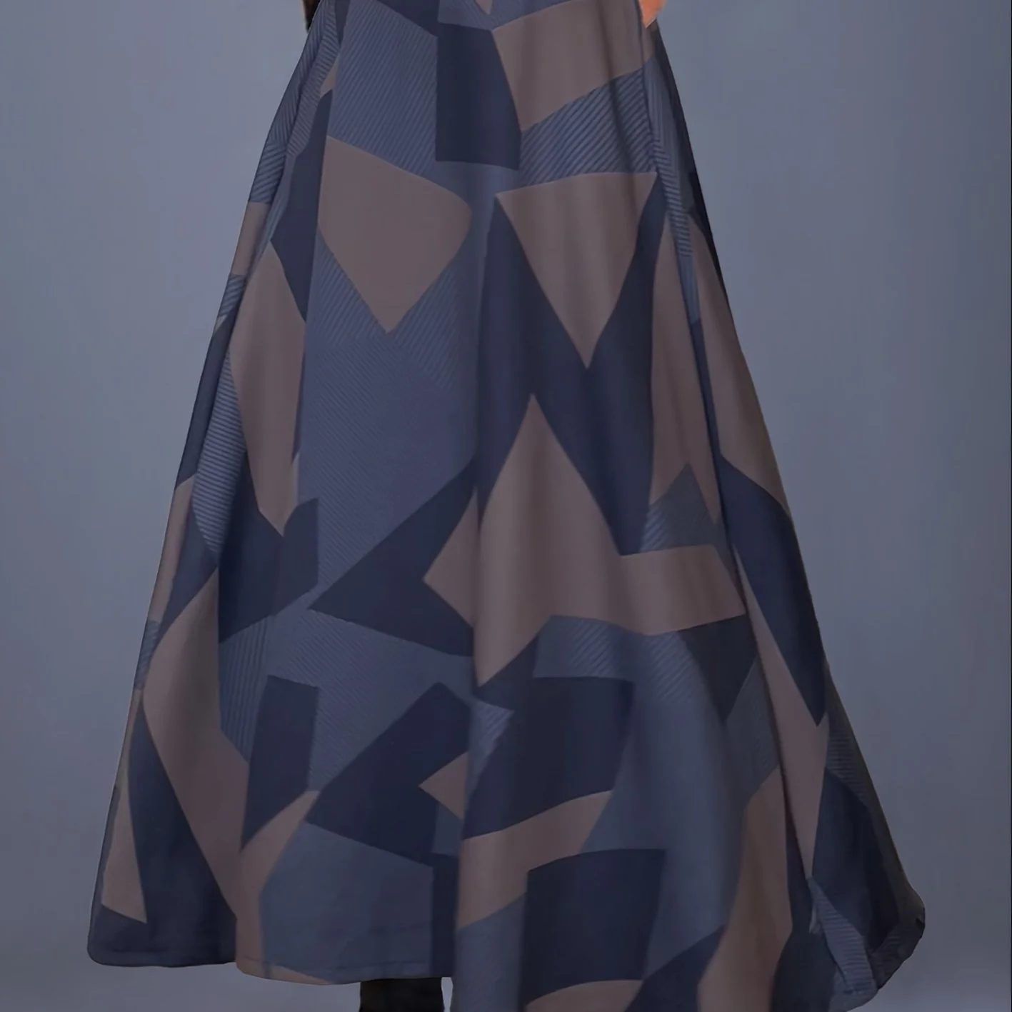 Colorblock Geometric Print Skirt, Casual High Waist Skirt For Spring & Fall, Women's Clothing