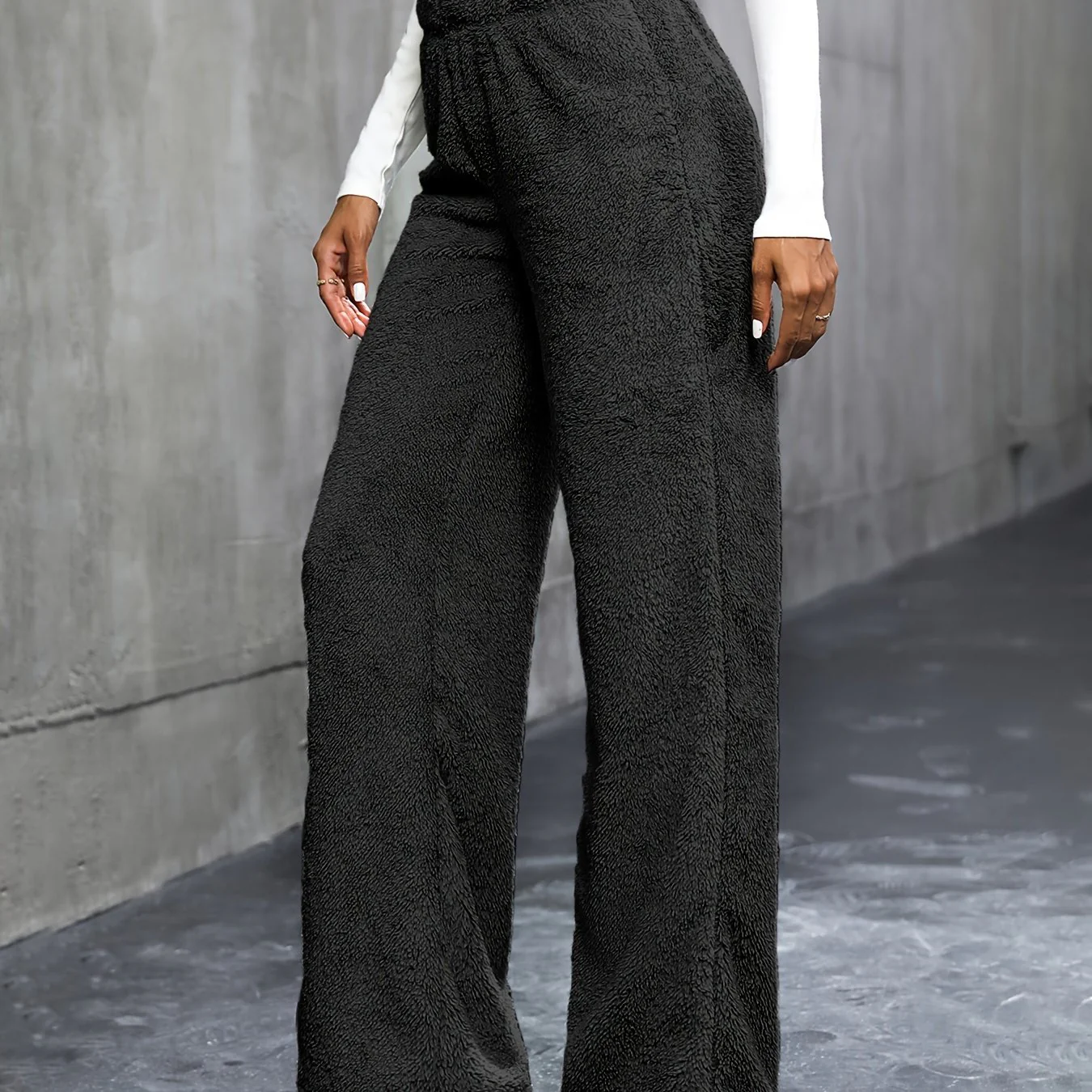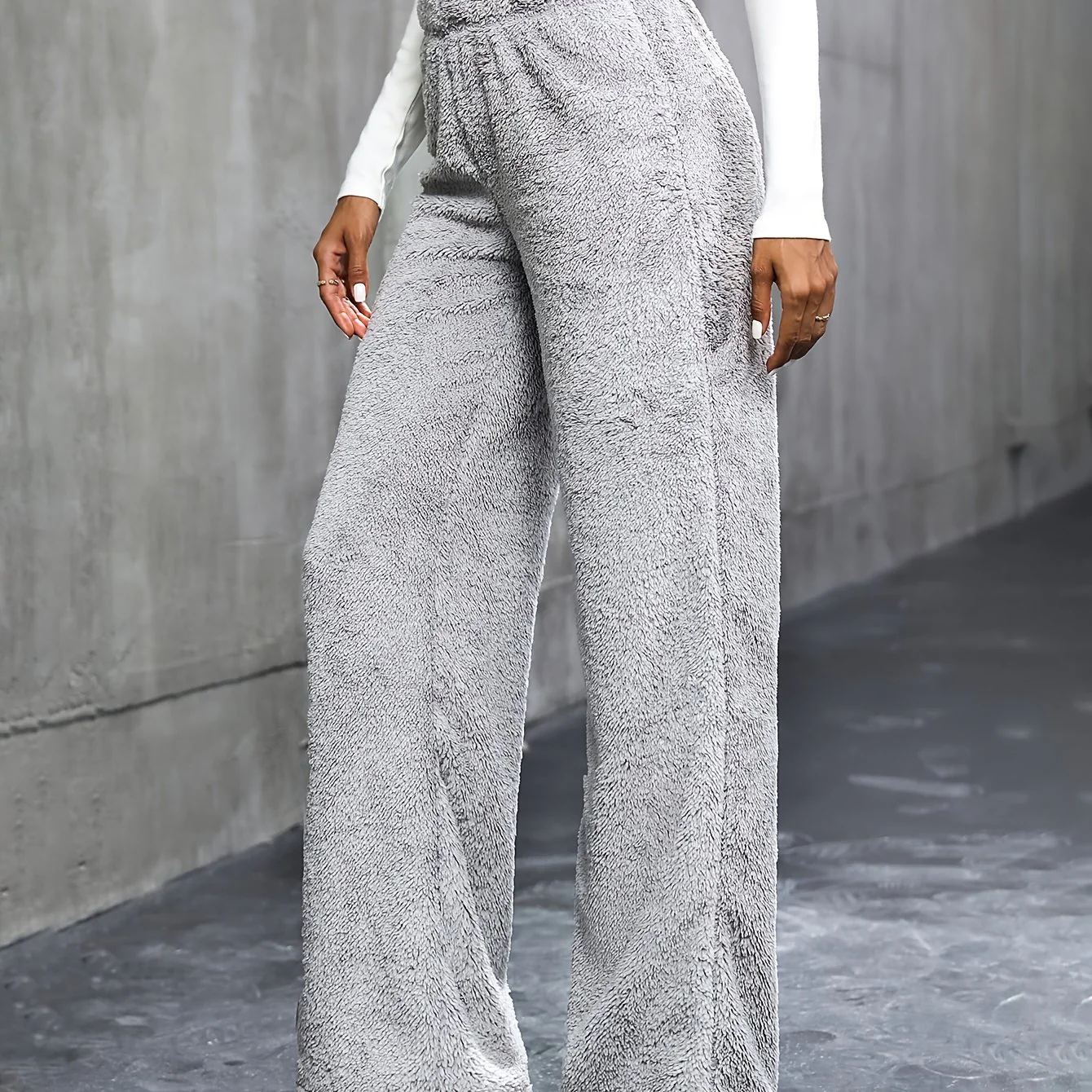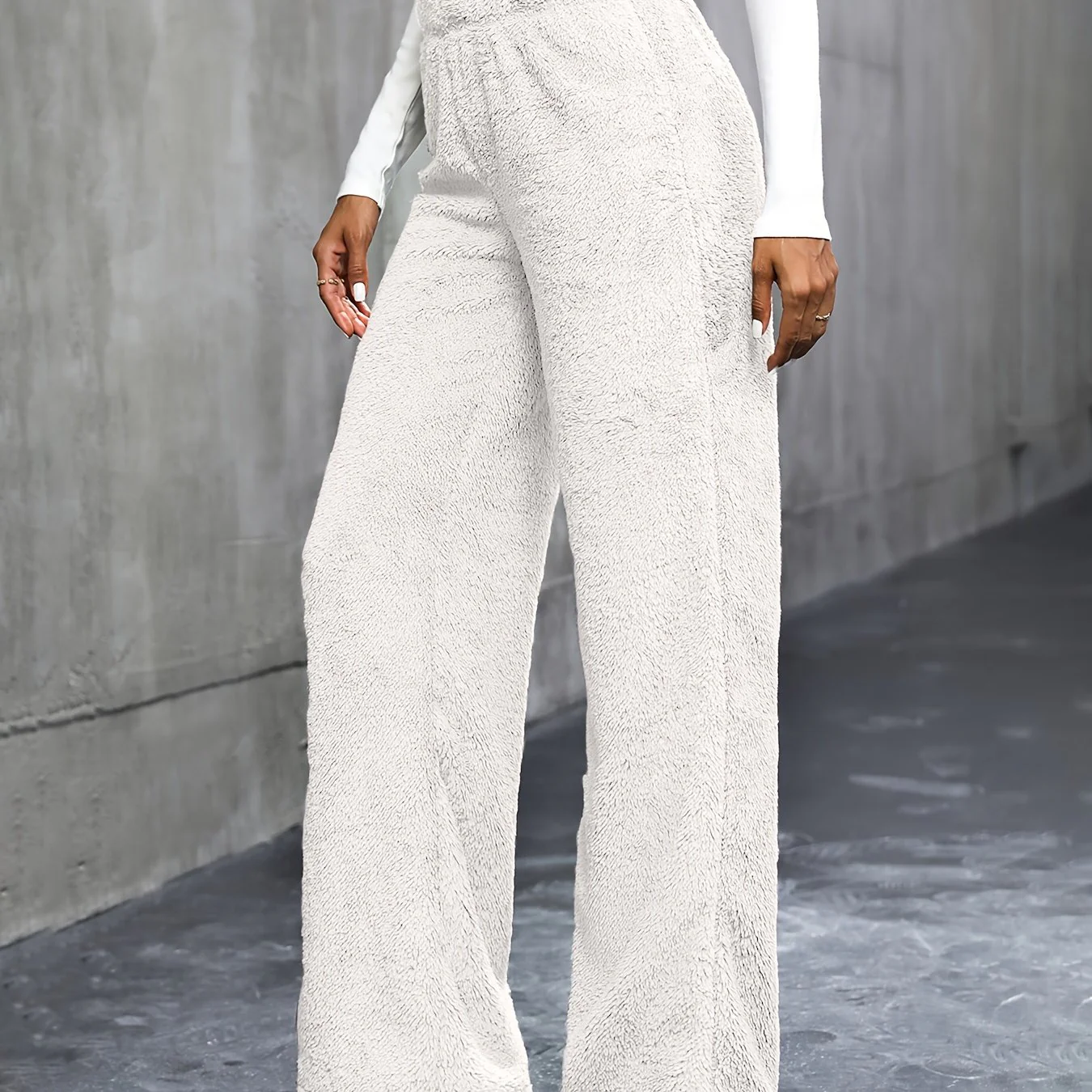 deanwangkt-1 Solid Plush Straight Leg Pants, Casual High Waist Pants, Women's Clothing