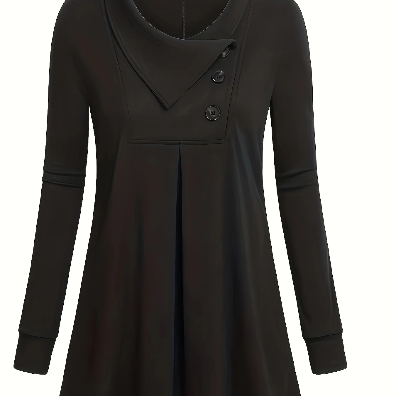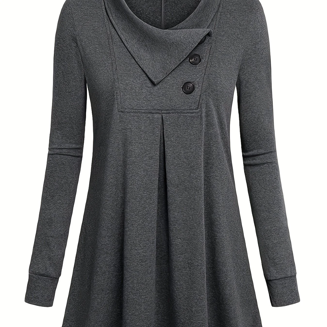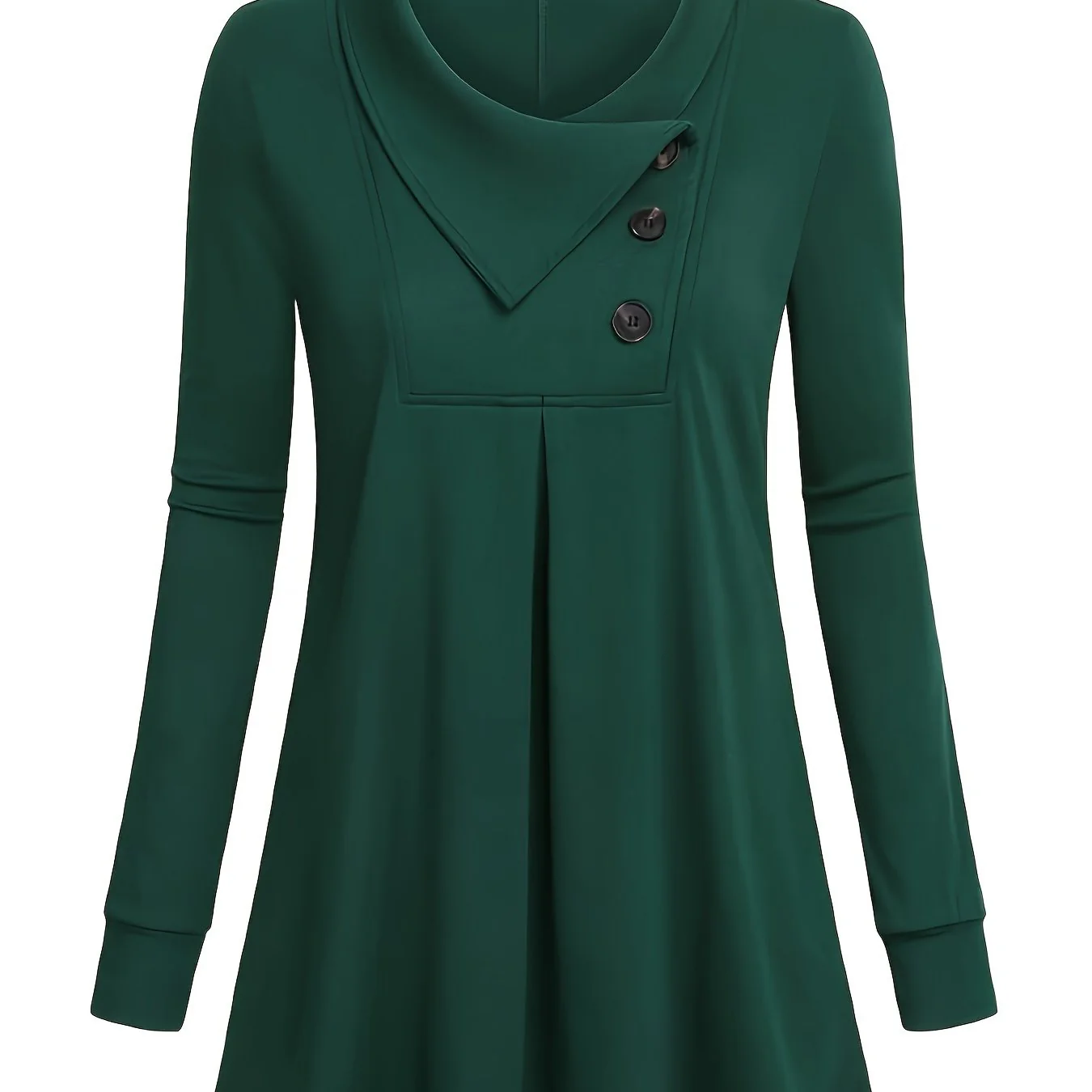 deanwangkt-1 Solid Button Front Pleated Top, Casual Long Sleeve Top For Spring & Fall, Women's Clothing