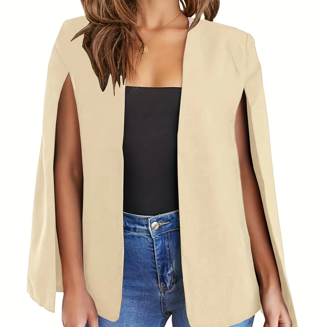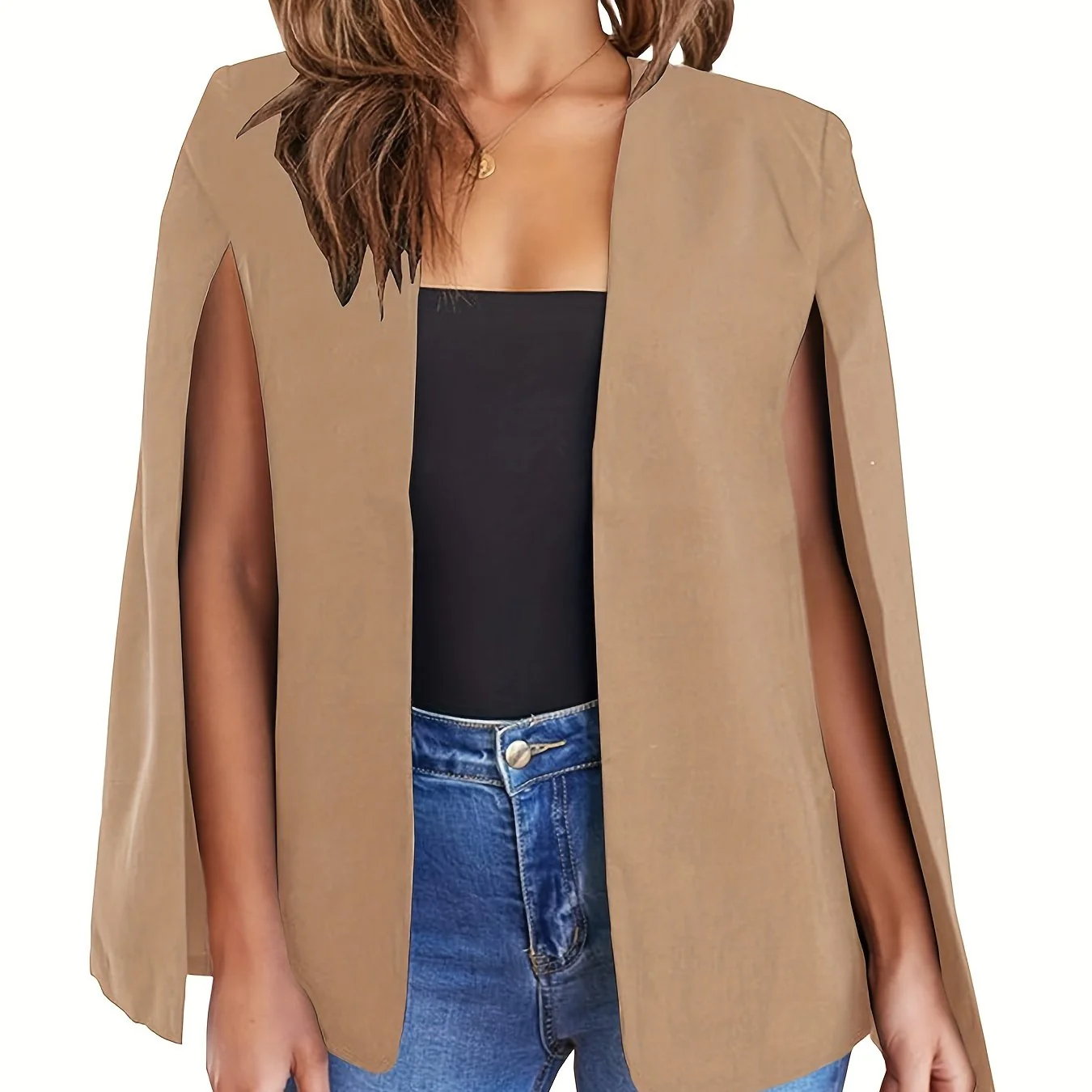 deanwangkt-1 Open Front Cape Sleeve Blazer, Elegant Solid Long Sleeve Blazer For Office & Work, Women's Clothing