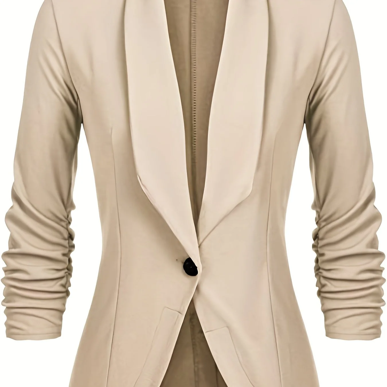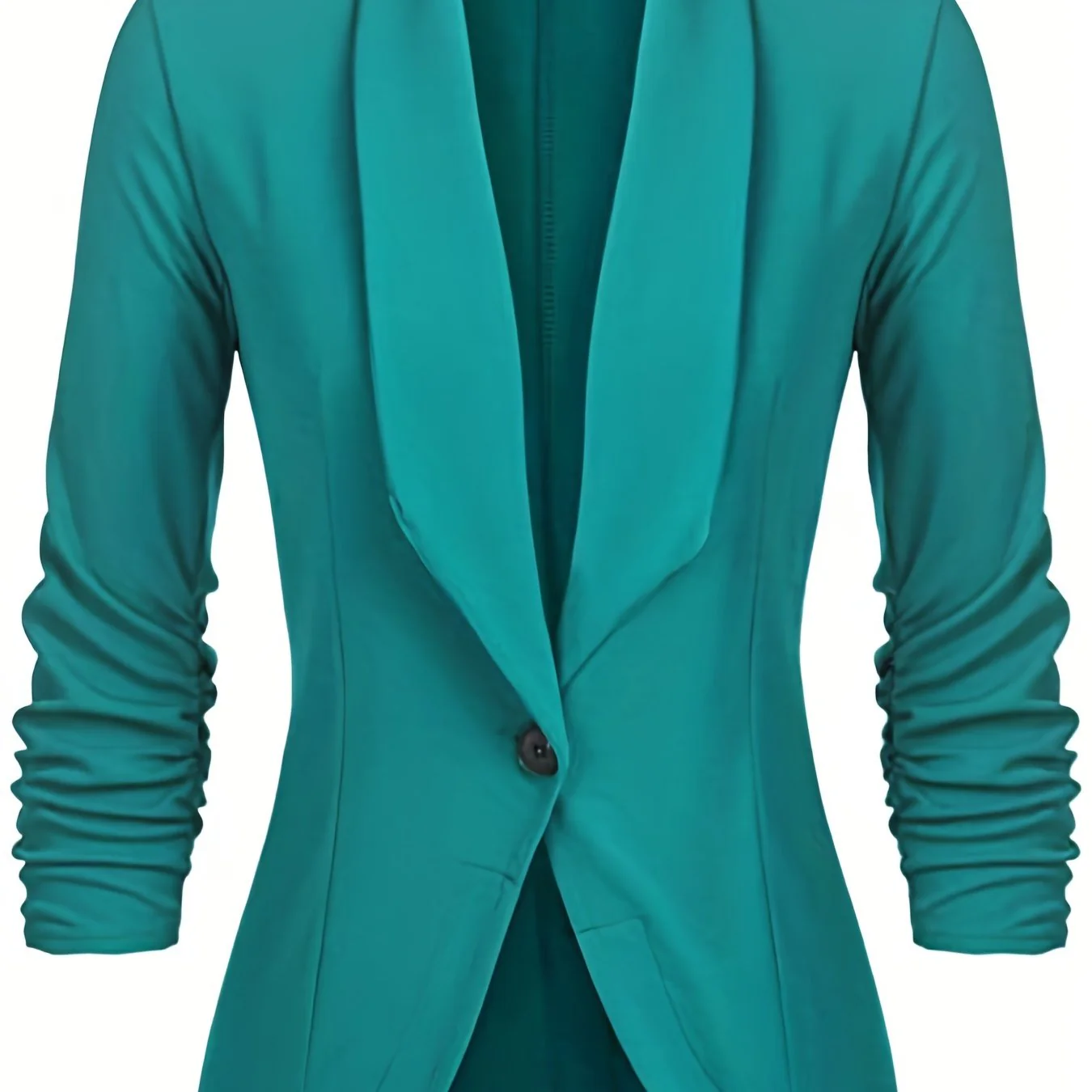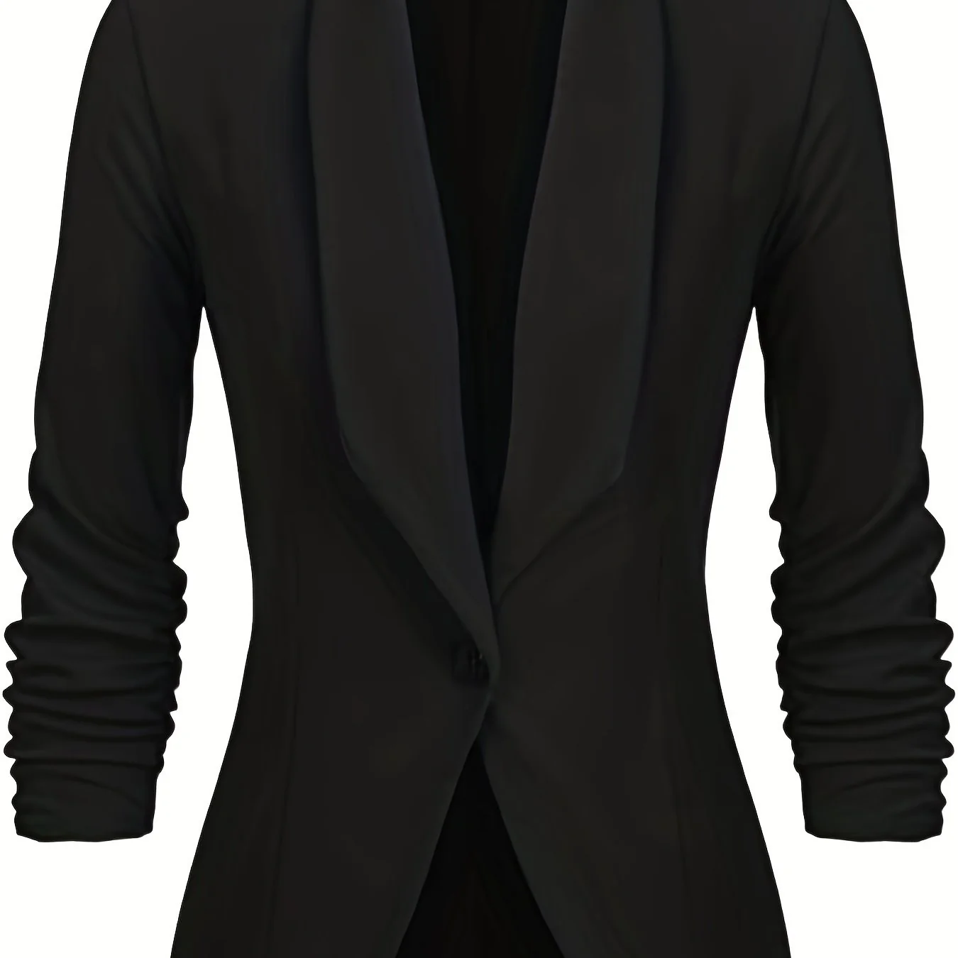 deanwangkt-1 Shawl Collar Solid Blazer, Elegant Open Front Long Sleeve Outerwear, Women's Clothing