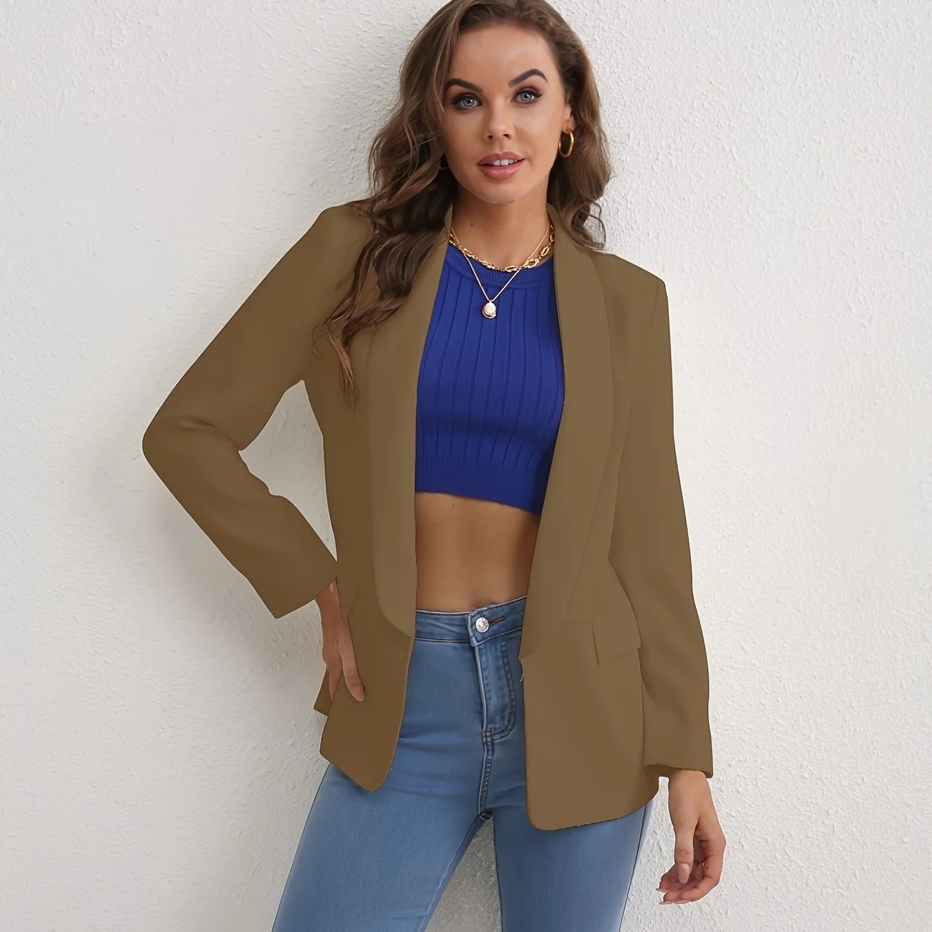 deanwangkt-1 Solid Open Front Blazer, Casual Long Sleeve Work Office Outerwear, Women's Clothing