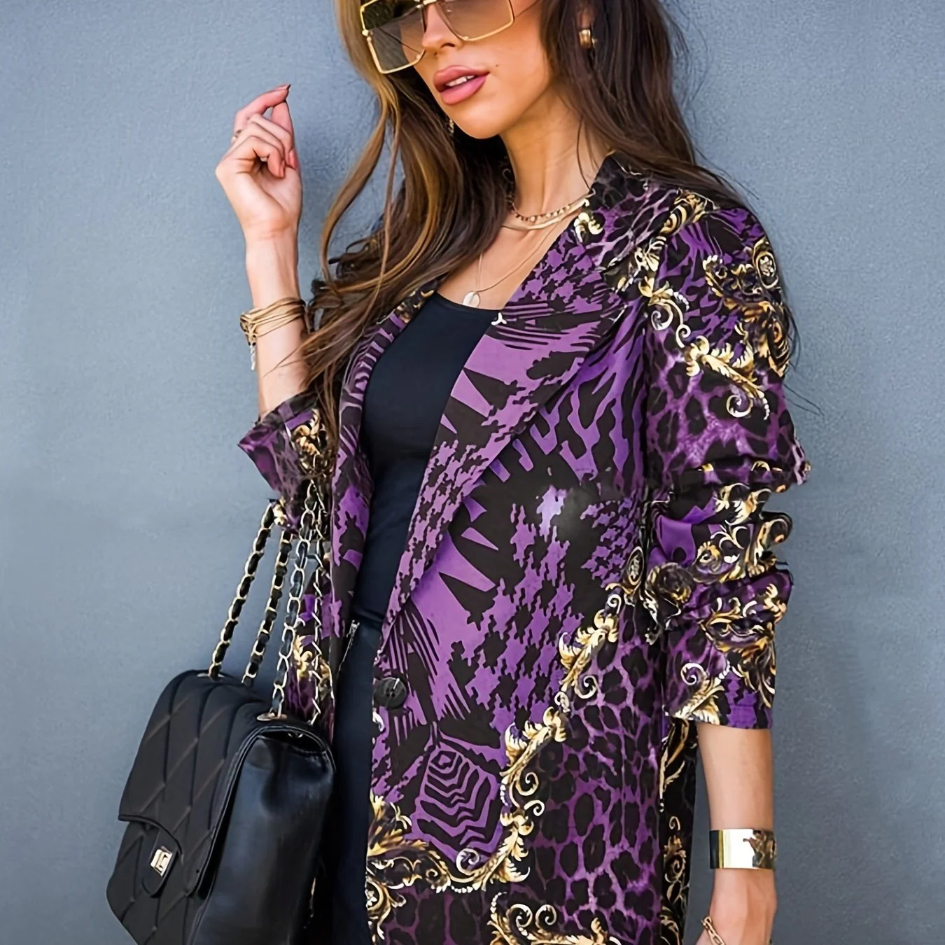 deanwangkt-1 Allover Print Open Front Blazer, Elegant Long Sleeve Blazer For Office & Work, Women's Clothing
