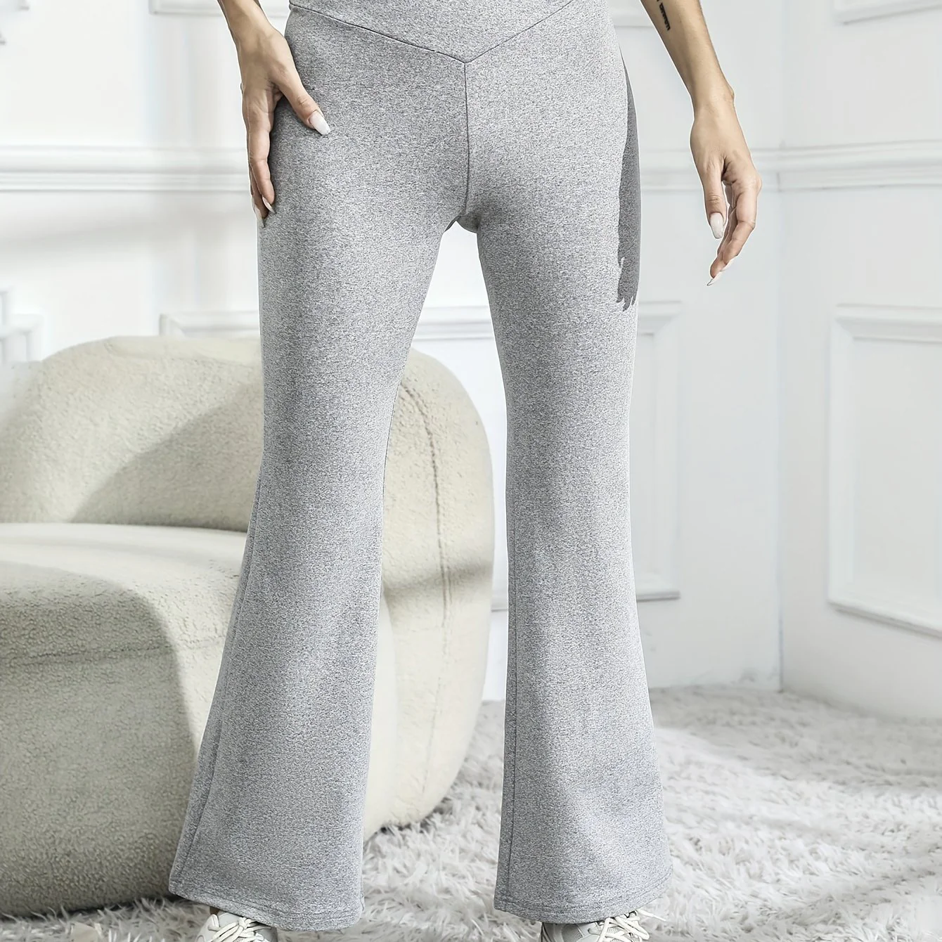 deanwangkt-1 Solid High Waist Flare Leg Pants, Vintage Slim Pants, Women's Clothing