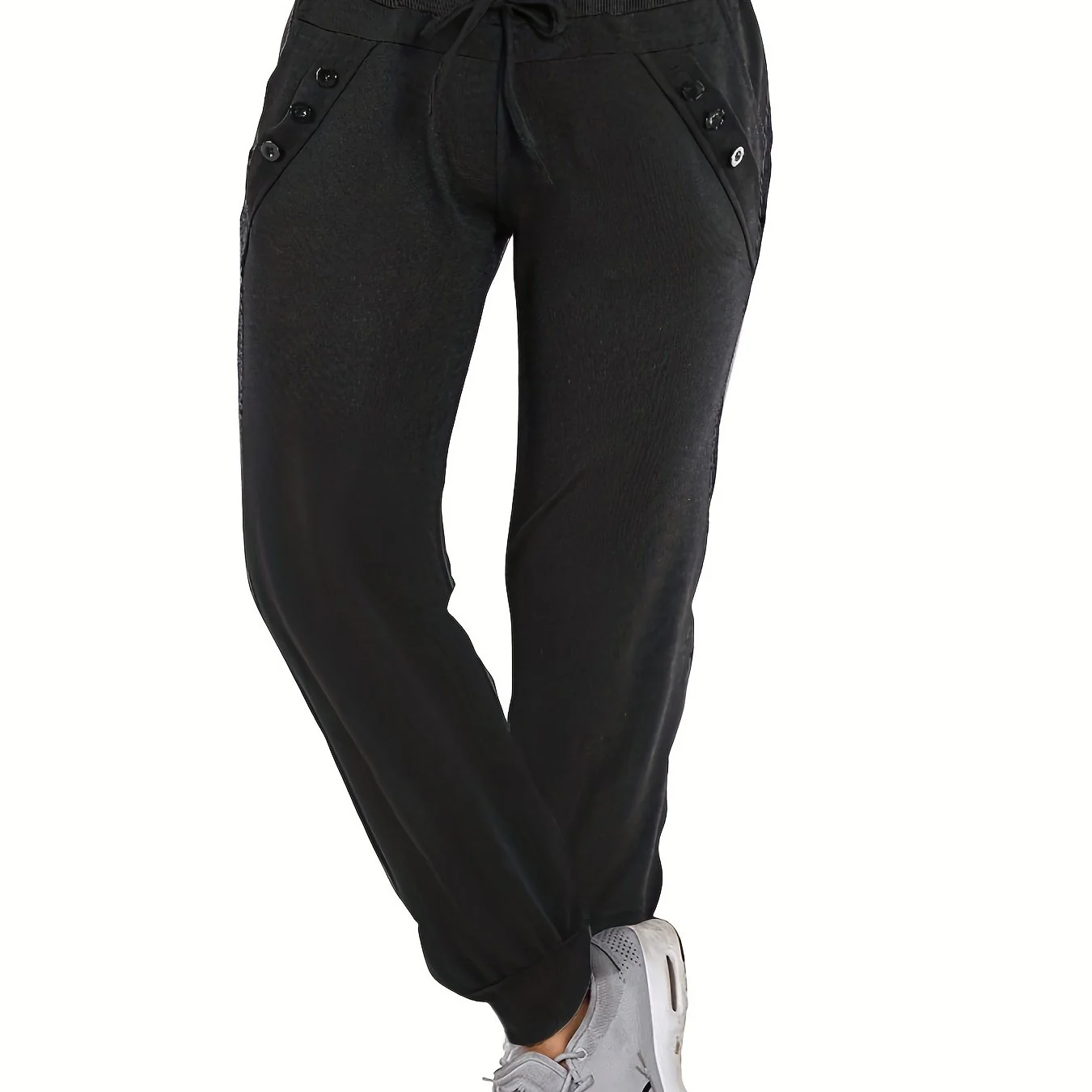 deanwangkt-1 Solid Tie Waist Pants, Casual Long Length Jogger Pants With Pockets For All Season, Women's Clothing