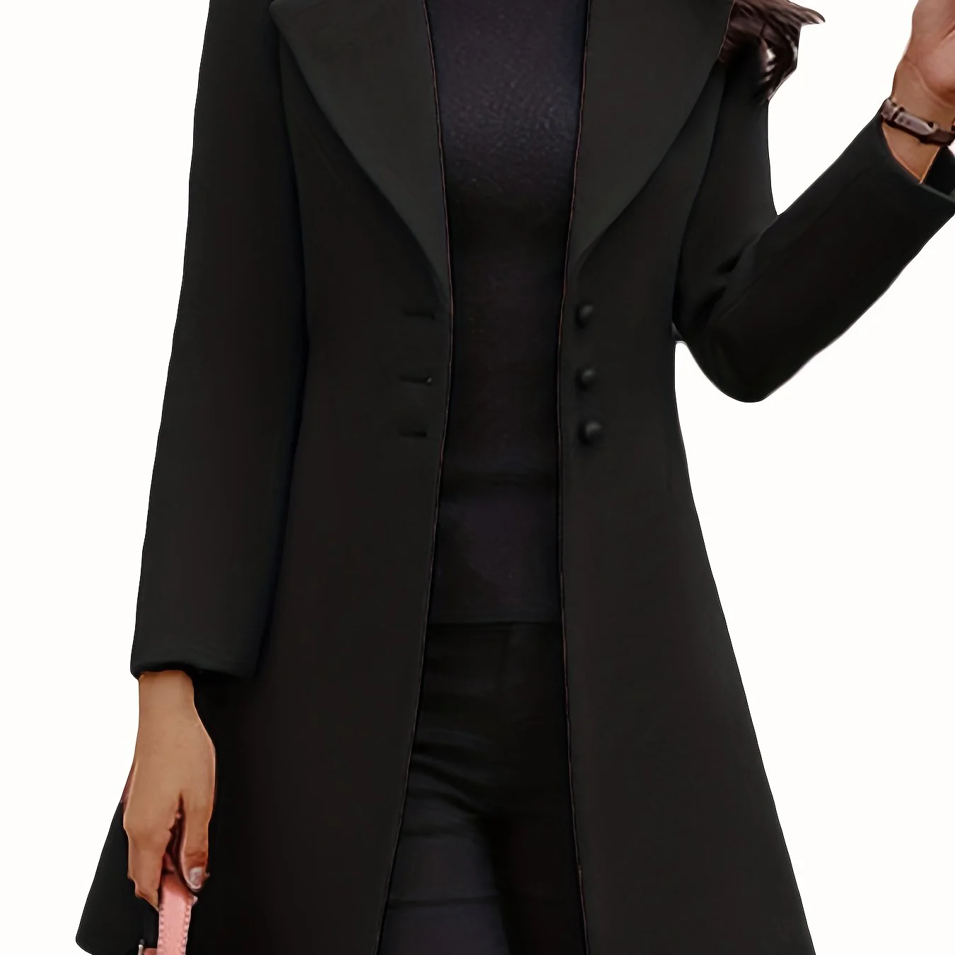 deanwangkt Button Front Lapel Coat, Elegant Long Sleeve Solid Outerwear, Women's Clothing