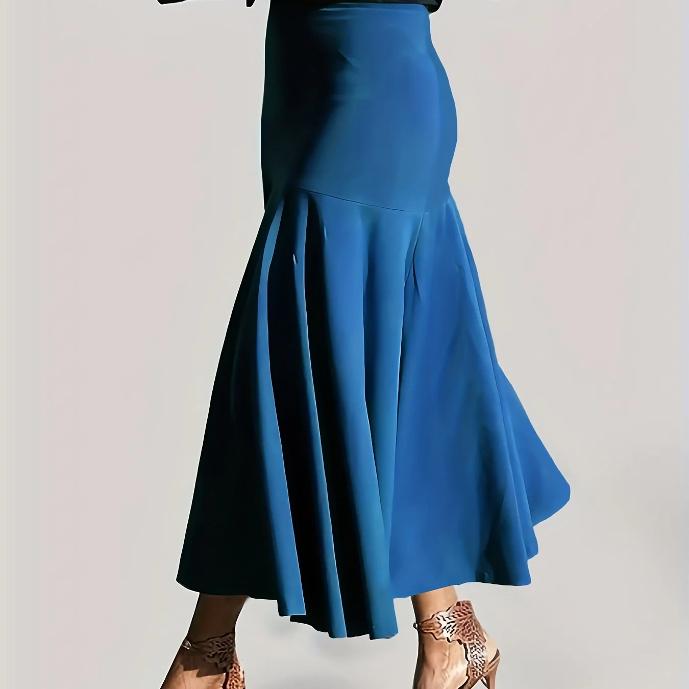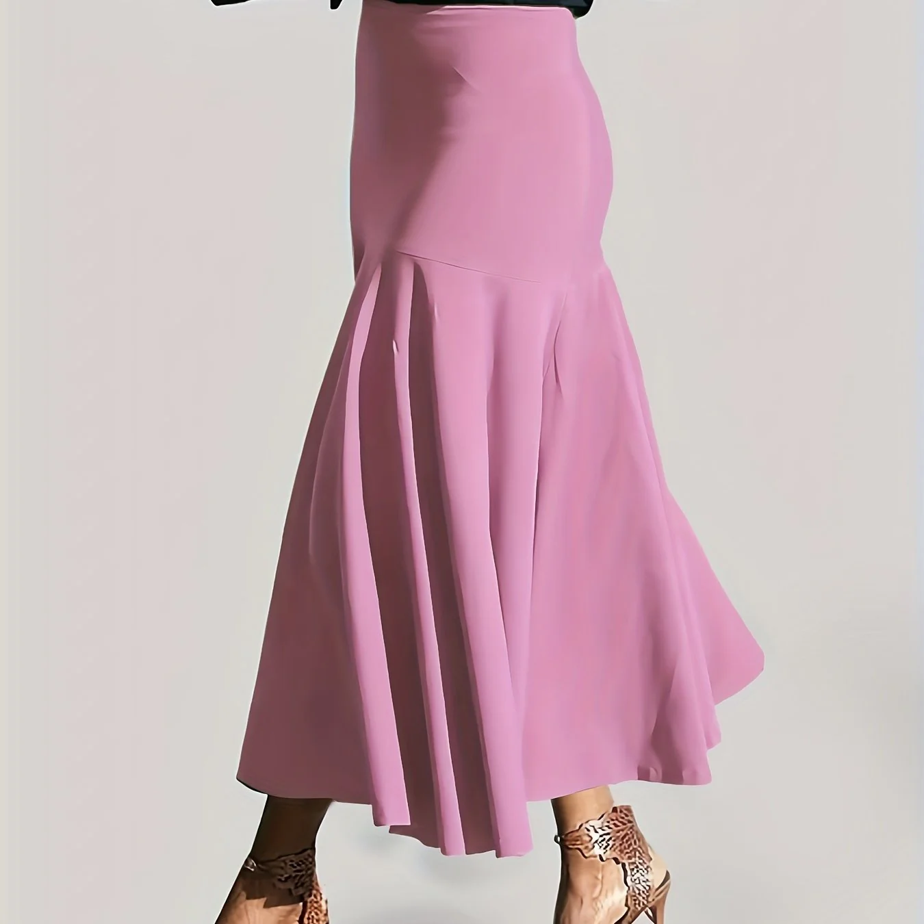 deanwangkt Plus Size Party Skirt, Women's Plus Solid High Rise Non-stretch Maxi Mermaid Skirt