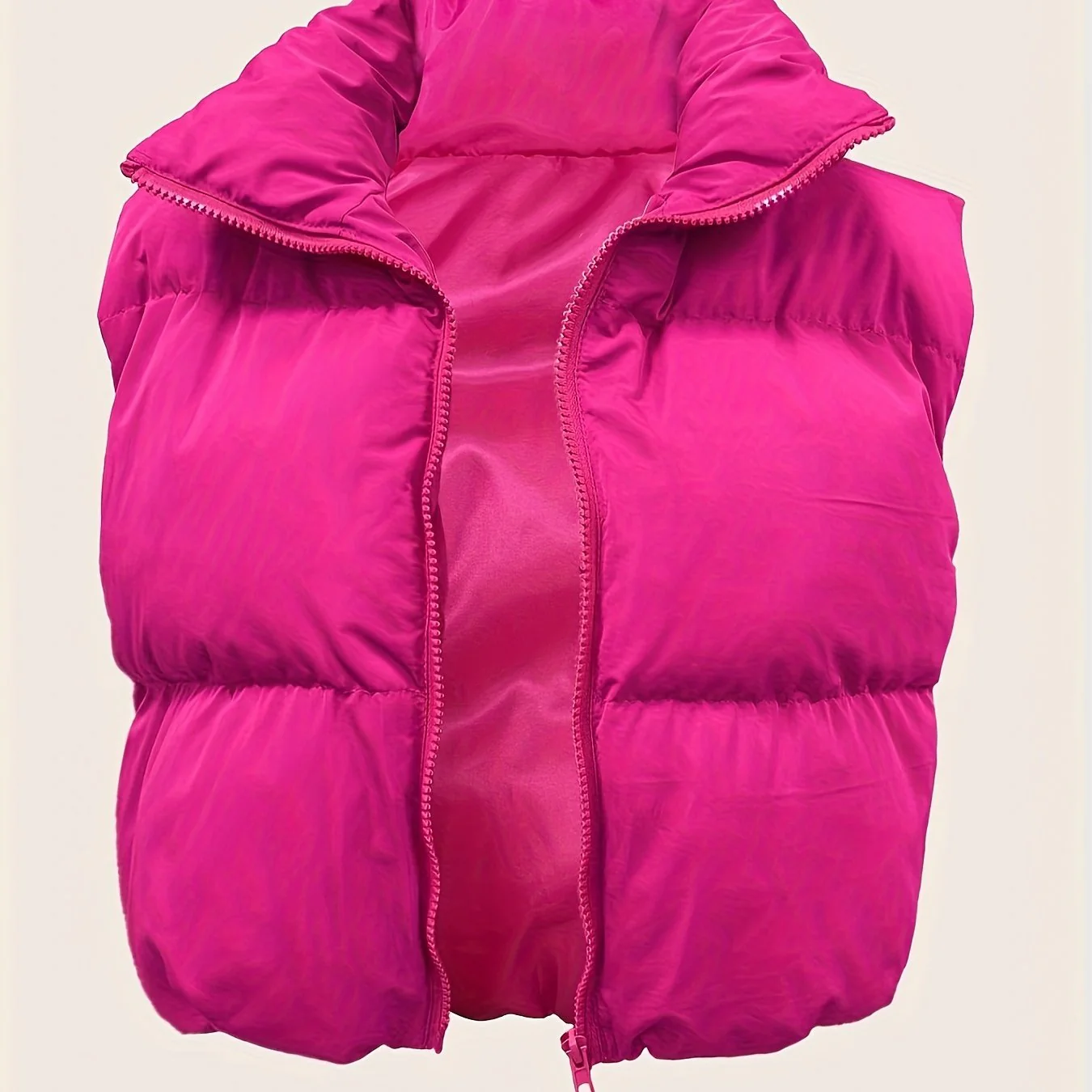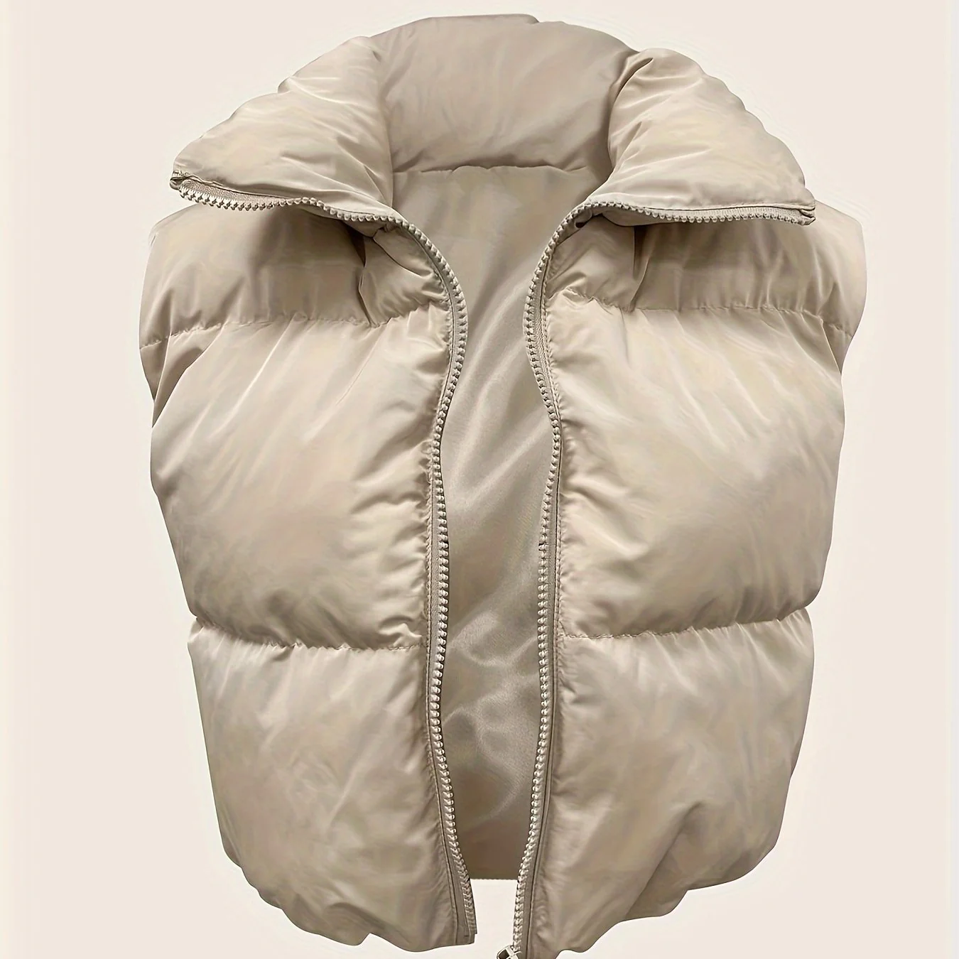 deanwangkt High Neck Zip Up Vest Coat, Casual Solid Sleeveless Outerwear, Women's Clothing