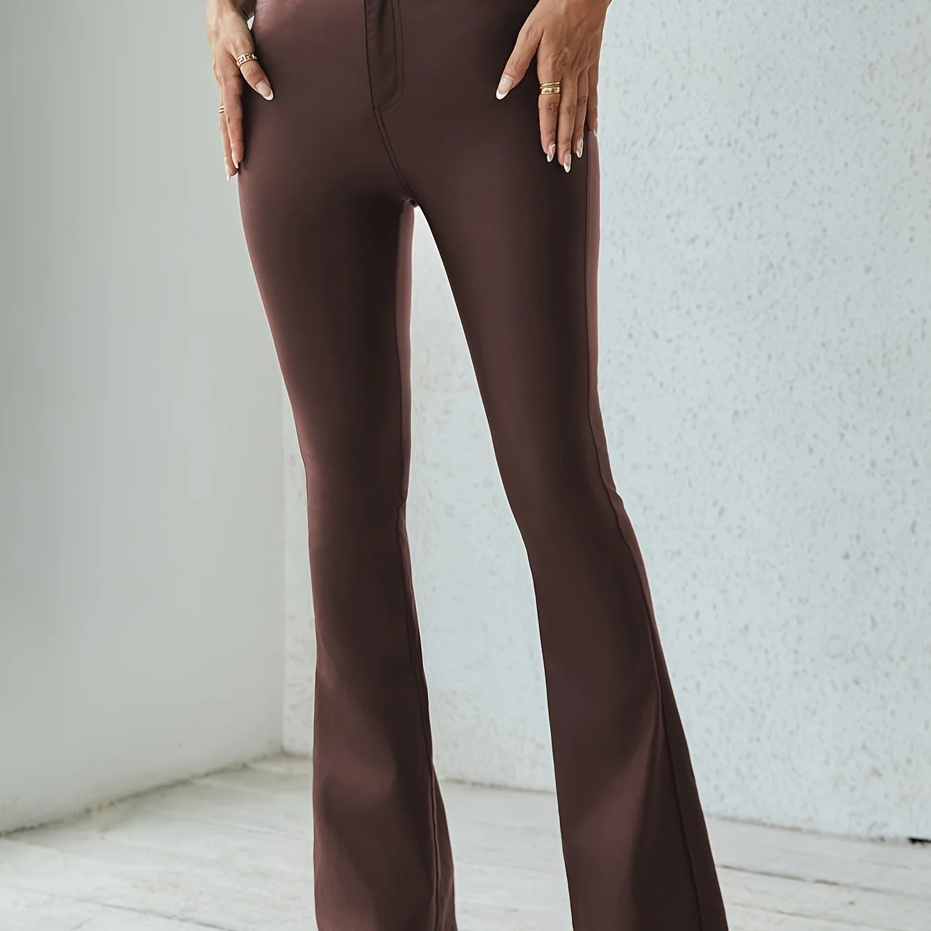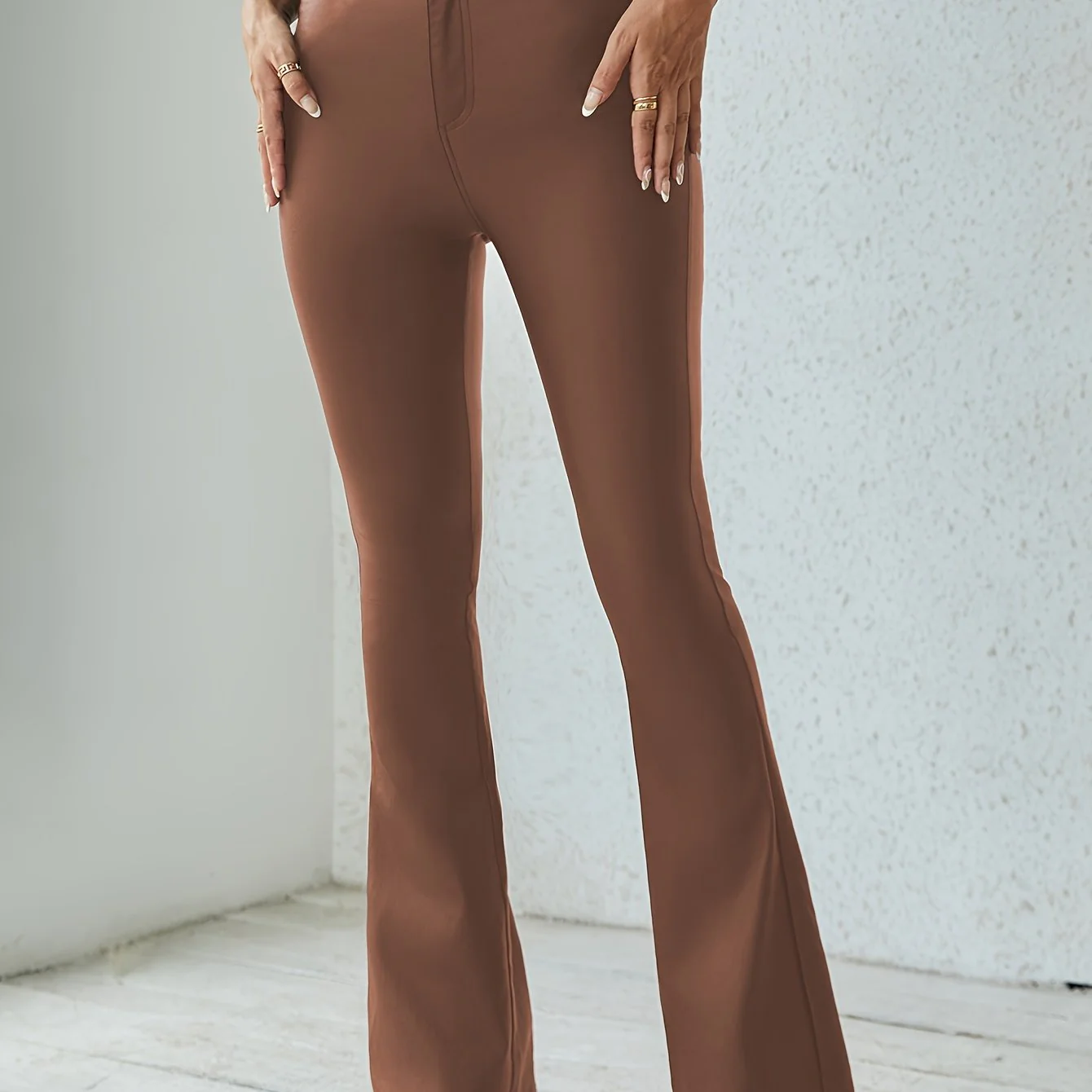 deanwangkt Faux Leather Flare Leg Pants, Casual Slim Long Length Pants, Women's Clothing