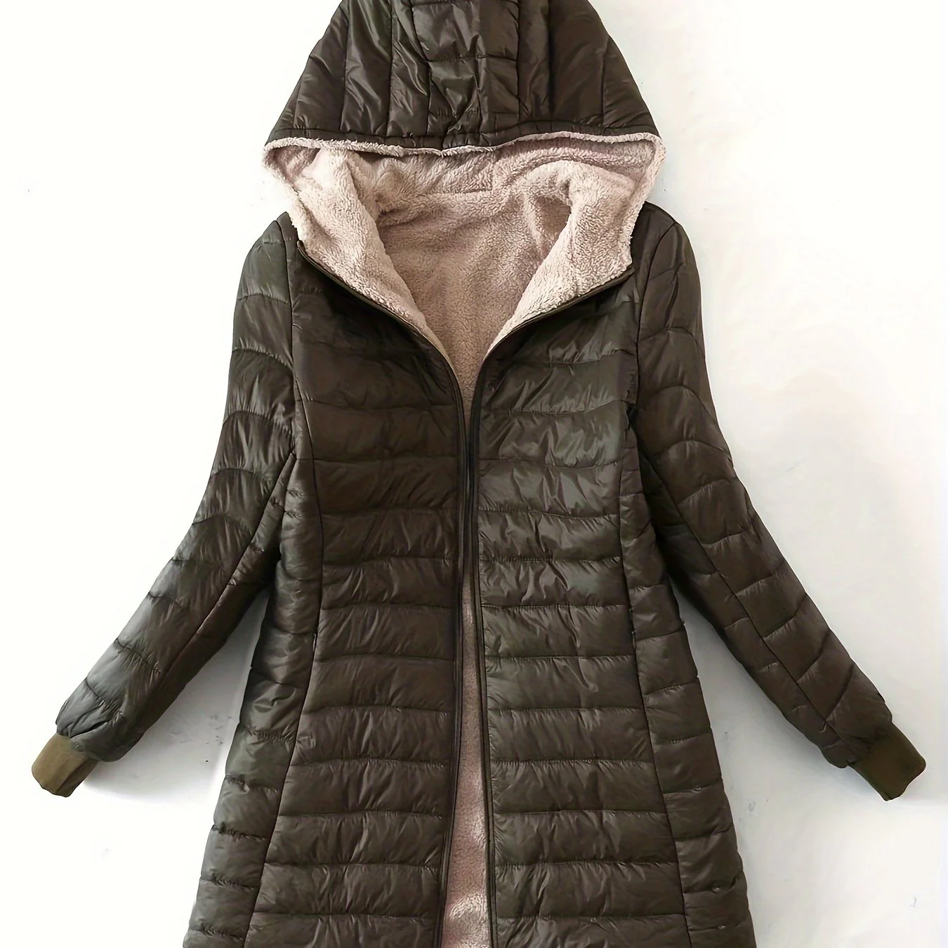 deanwangkt Zip Up Solid Hooded Coat, Casual Long Sleeve Winter Warm Outerwear, Women's Clothing