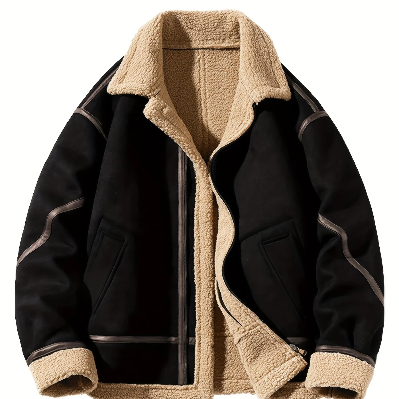 deanwangkt Men's Trendy Suede Fuzzy Fleece Lined Coat Warm Jacket Long Coat Outwear For Men Winter Autumn Hiphop Style Streetwear
