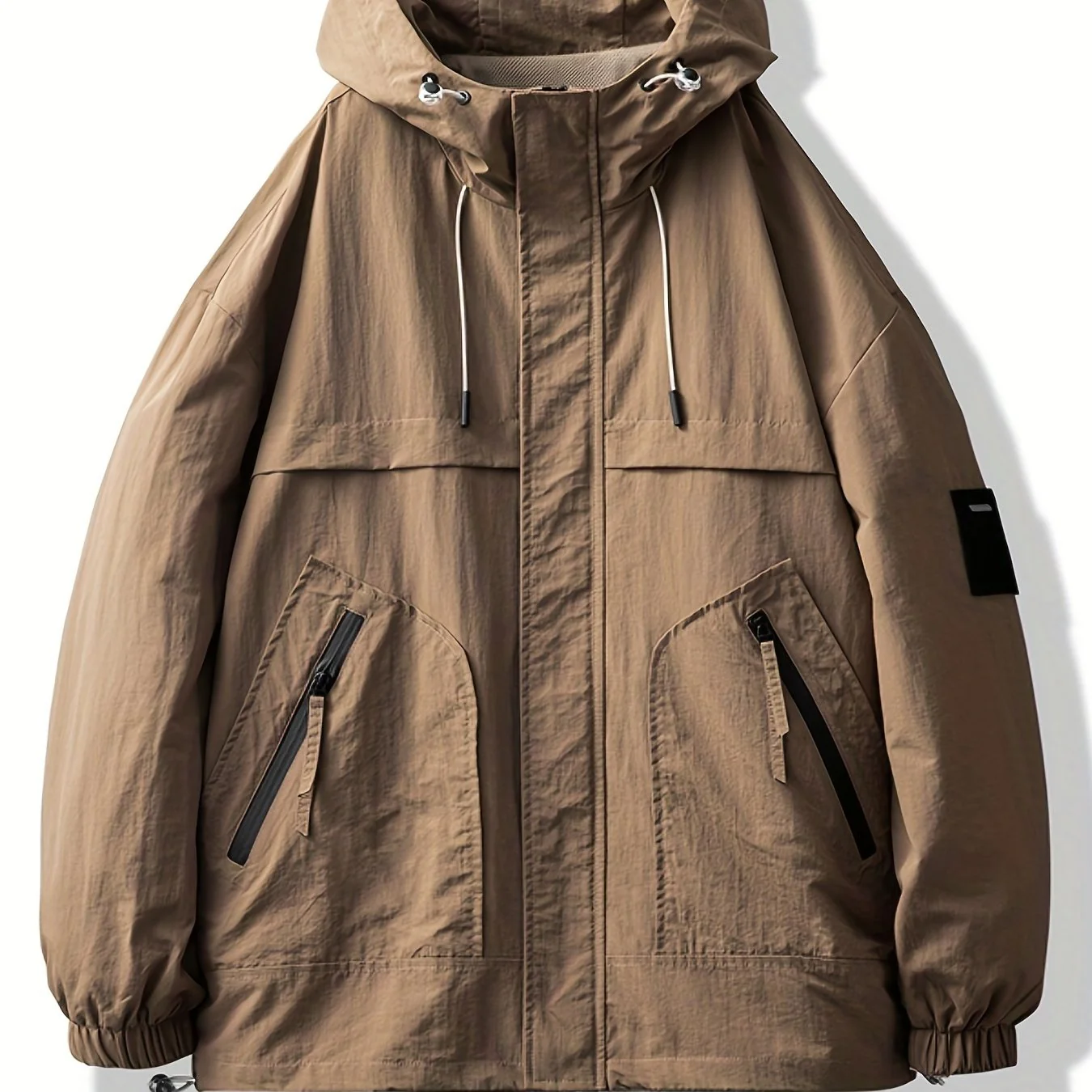 deanwangkt Lightweight Hooded Windbreaker Jacket, Men's Casual Stand Collar Zip Up Nylon Jacket Coat For Spring Fall Outdoor Hiking Climbing Camping Cycling