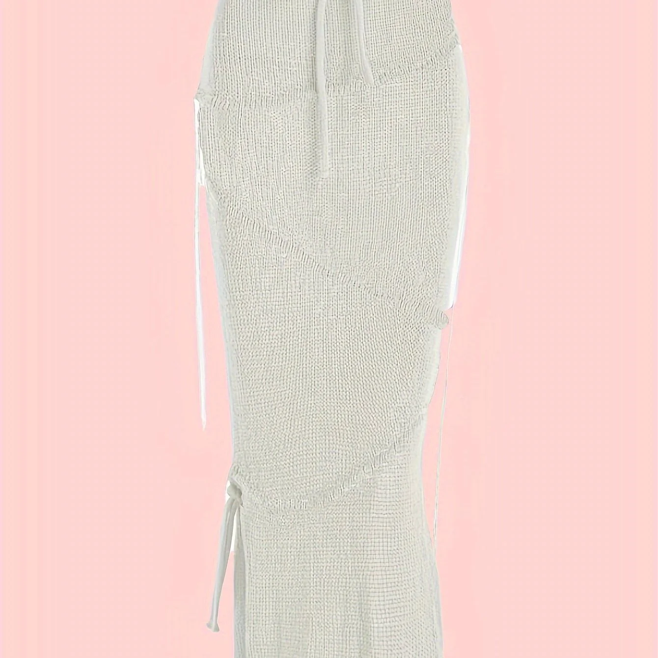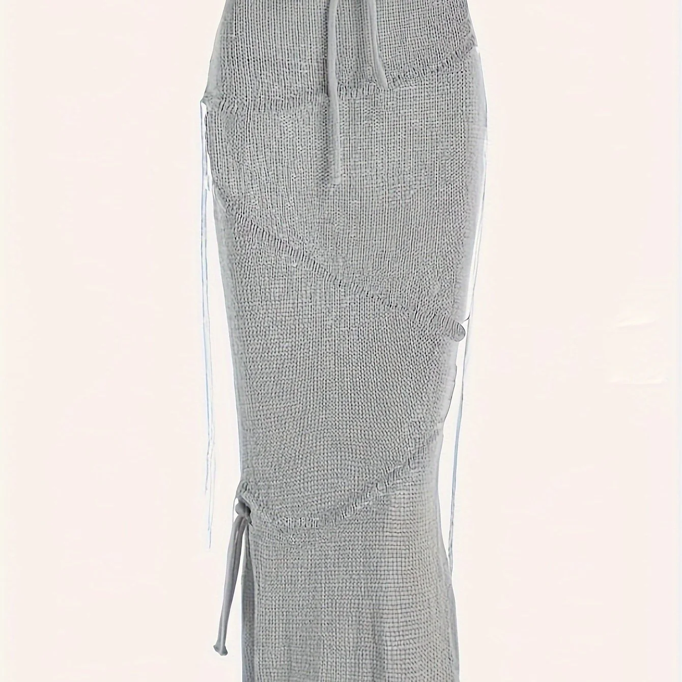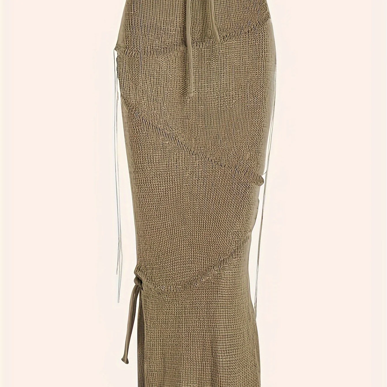 deanwangkt Solid Knitted Drawstring Waist Side Shirring Skirt, Casual Asymmetrical Ankle Skirt . Women's Clothing