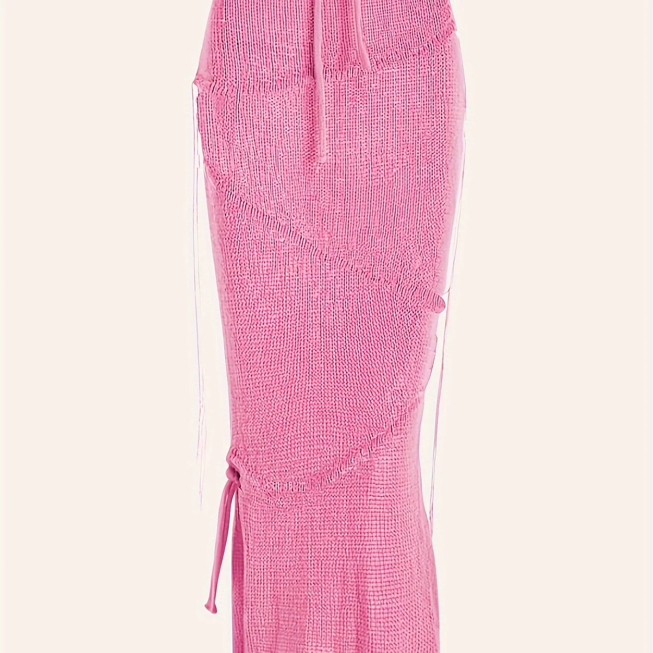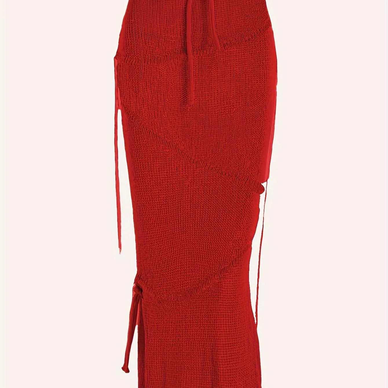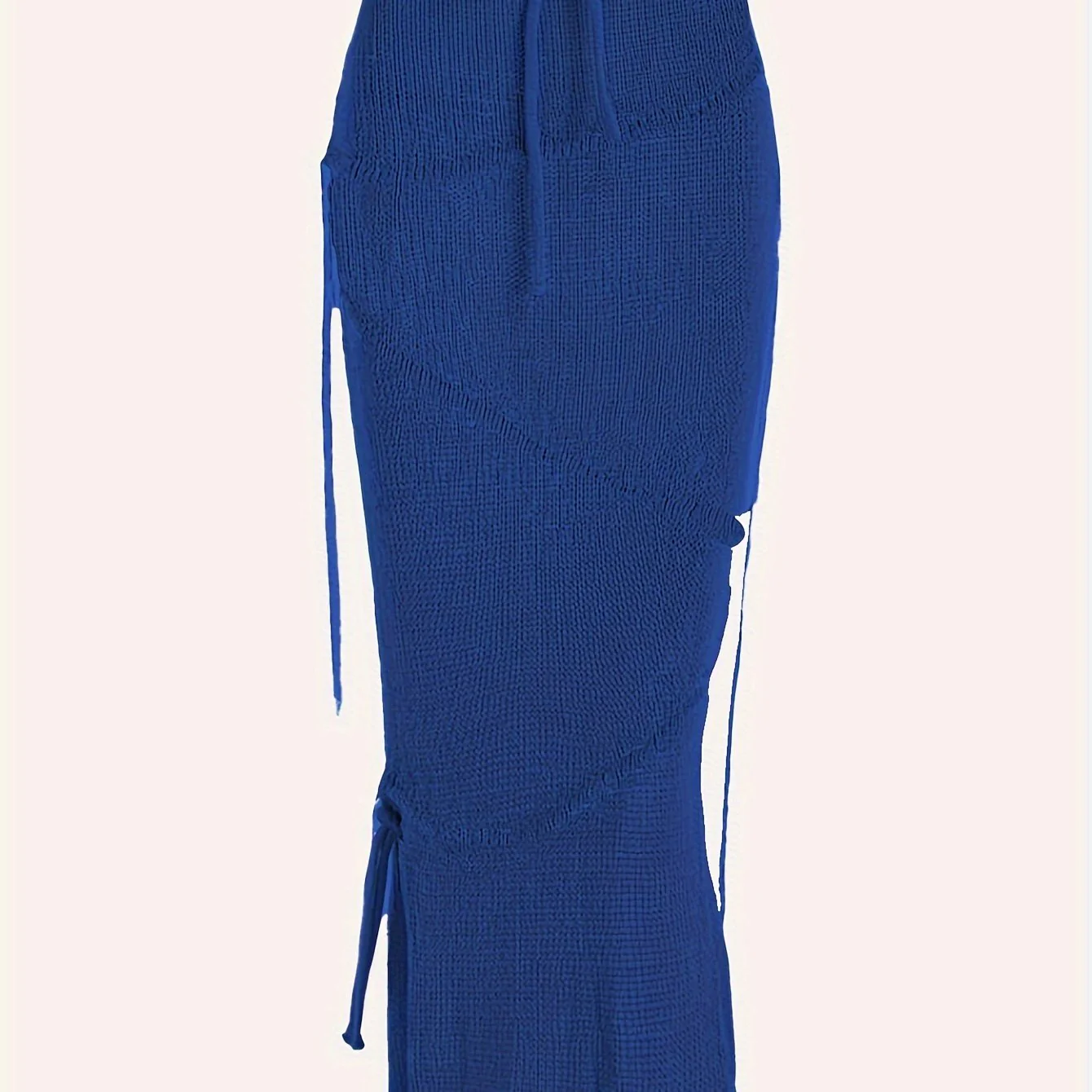 deanwangkt Solid Knitted Drawstring Waist Side Shirring Skirt, Casual Asymmetrical Ankle Skirt . Women's Clothing