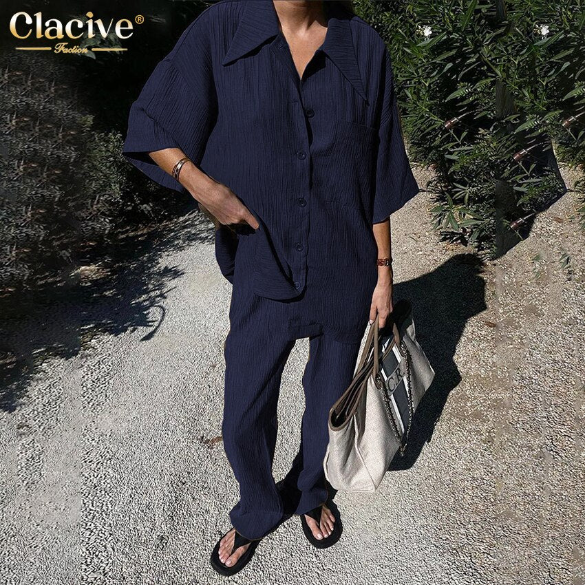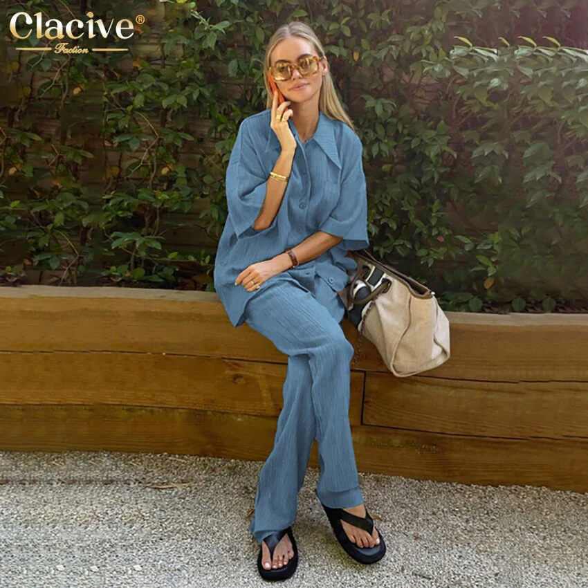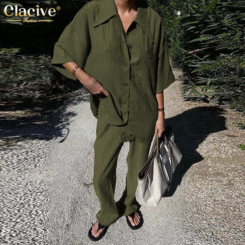 deanwangkt Causal Loose Trouser Suits Autumn Short Sleeve Blouse With High Wasit Pants Set Women Elegant Brown 2 Piece Pants Sets