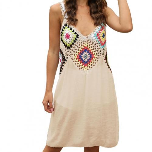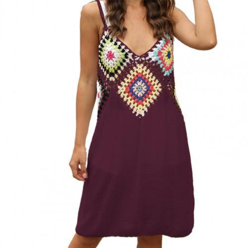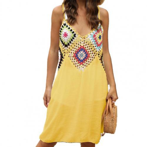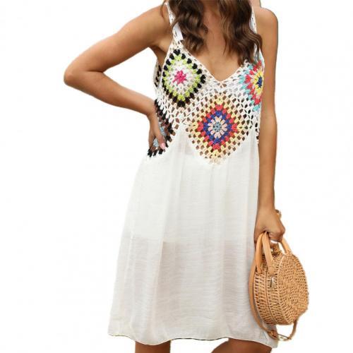 Women Dress Crochet Spaghetti Strap Summer Patchwork V Neck Beach Cover-ups Summer Chic Elegant Casual Dresses Clothes