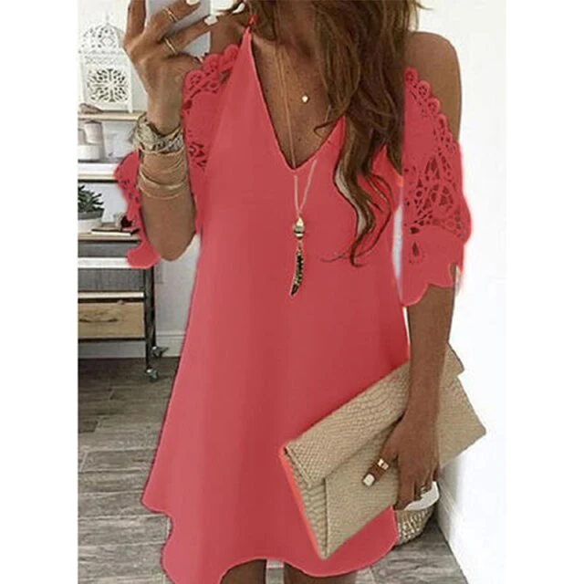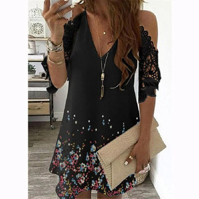 Floral Print Vintage Dresses Women's Summer Casual V-Neck Sexy Off Shoulder Lace Party Beach Mini Dress Plus Size Sundress Robe