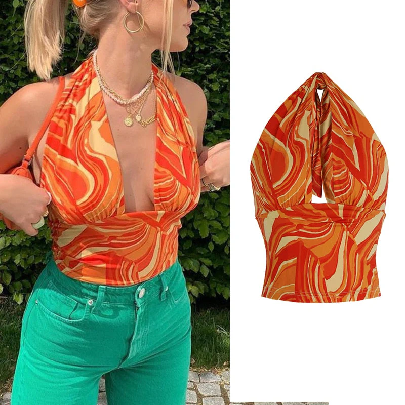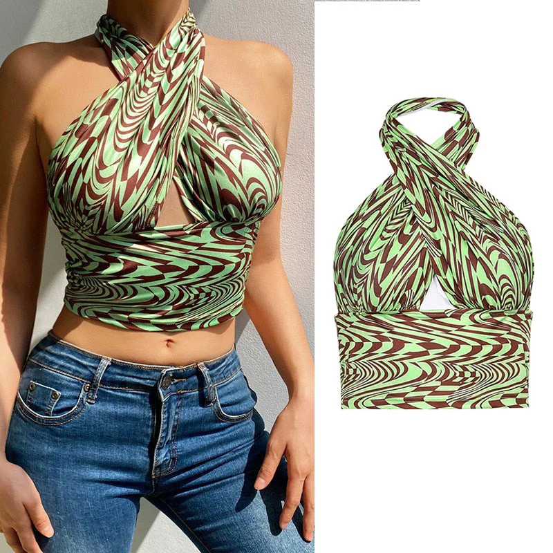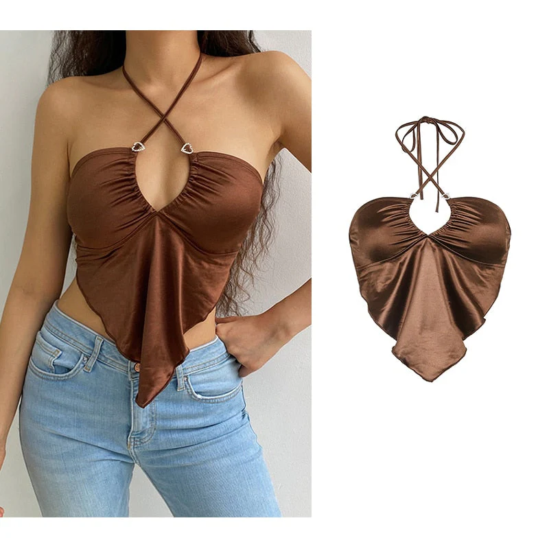deanwangkt Y2K Girl Sexy Sleeveless Halter Crop Tops for Women Hot Sexy Backless Irregular Cropped Feminino Top Streetwear