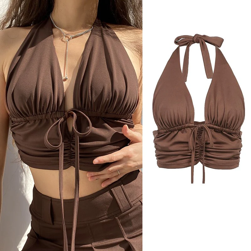 deanwangkt 90s Women Aesthetic Brown Corset Top Vintage Crop Top Y2k Grunge Kawaii With Glove Fashion Sweats Summer Sexy Camis Korean Style