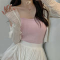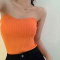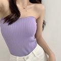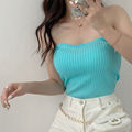 deanwangkt Sexy Strapless Knitted Tanks Women Summer High Elastic Crop Top Fashion Pullover Solid Color Cute White Female Corset Top New