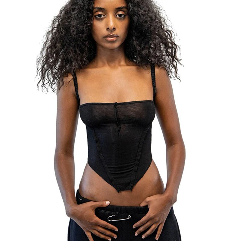 deanwangkt 2000s Sexy Lrregular Hollow Sling Top For Women Summer Fashion Sleeveless Crop Top Fairy Goth Female Casual Streetwear Hot Deals