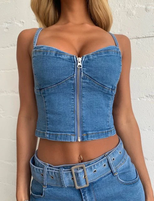 deanwangkt Summer Blue Denim Two Pieces Skirts Sets Women Jeans Streetwear Low Cut Straps Bustier Crop Tops+Mini Bodycon Skirts Club Sets