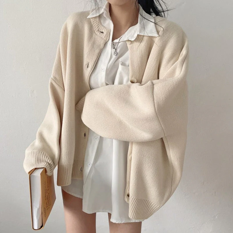 deanwangkt Knitted Cardigan Autumn Korean Retro Round Neck Single-Breasted Loose Casual Solid Color Long-Sleeved Sweater