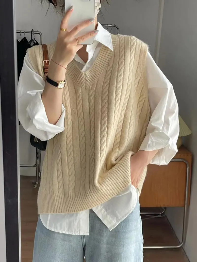 deanwangkt V Neck Knitted Vest Sweater Sleeveless Women Khaki Casual Pullover Black Autumn Winter Gray Jumper Fashion