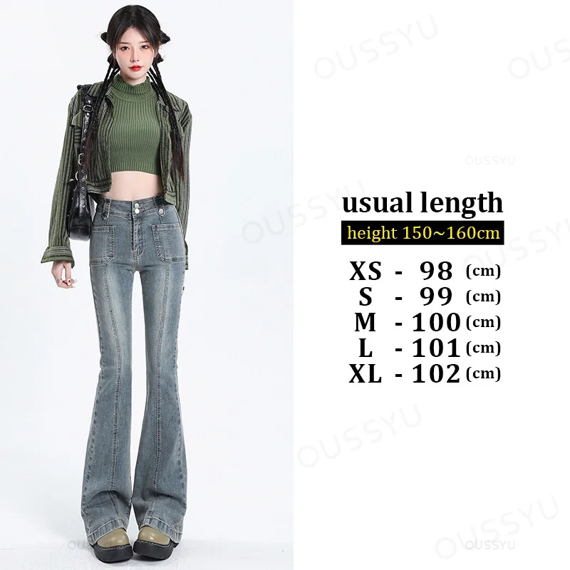 deanwangkt Retro High Waisted Flare Jeans Women Korean Autumn New Y2K High Street Brown Pants Female Buckle Cool Casual Pants S-XL