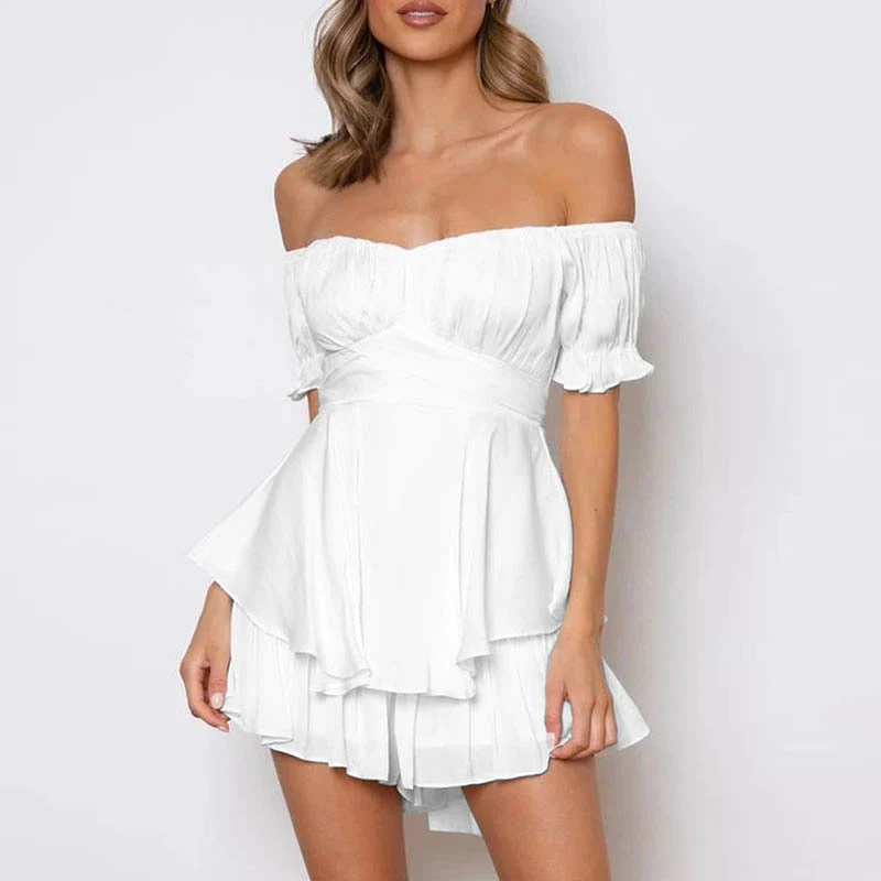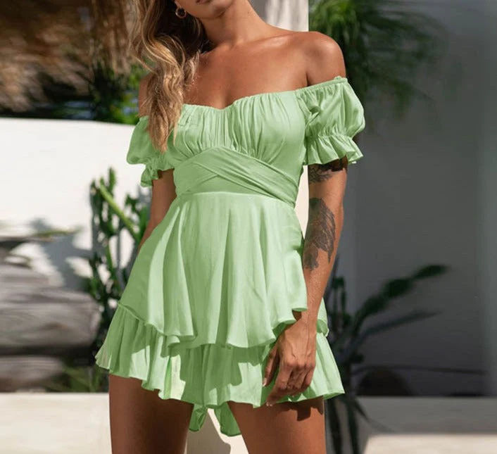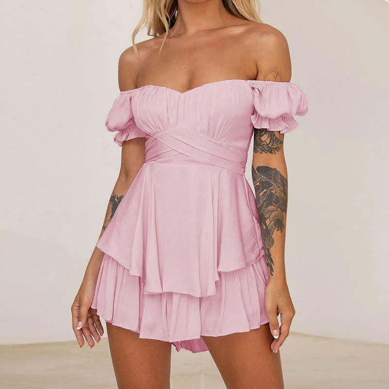 deanwangkt Solid Color Ruffle Women Rompers Sexy Off Shoulder Jumpsuit Female Summer Fashion Short Sleeve Women Rompers Bodysuit