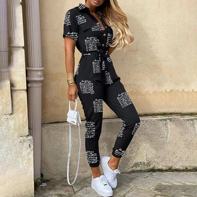 deanwangkt Summer Casual Short Sleeve Rompers Womens Jumpsuit Pure Color Button Overalls For Women Fashion Lace Up Slim Jumpsuit Women