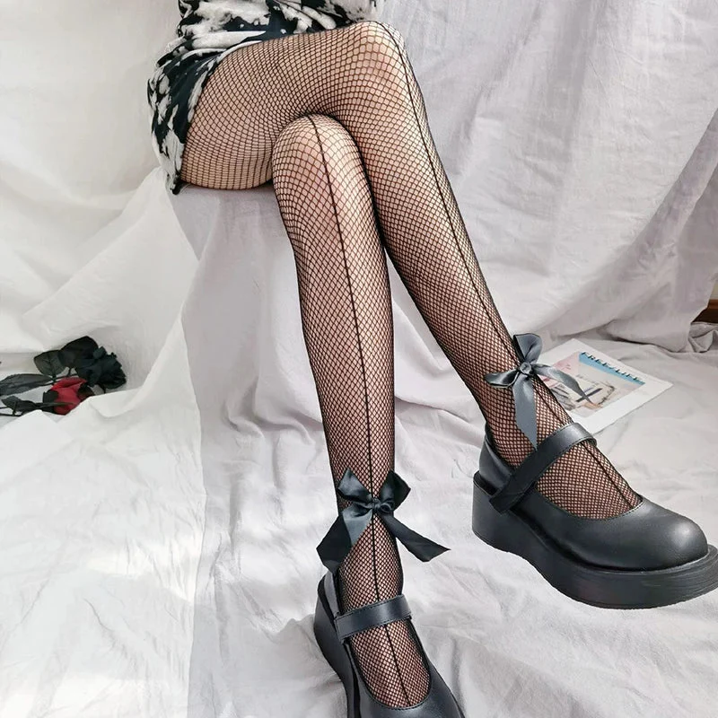 deanwangkt Sexy Stockings Over The Knee Fishnet Stockings with Bow Attack Speed Mesh Socks See Through Sexy Black Jk Long Knee High Socks