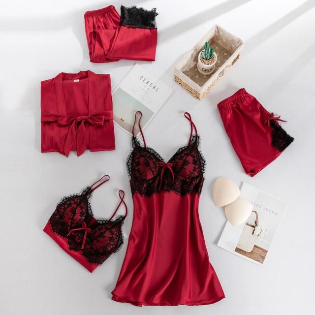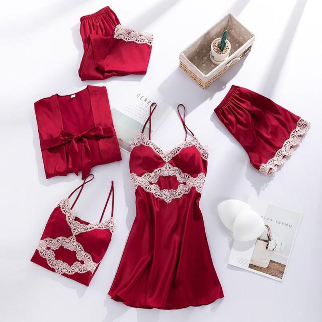 deanwangkt Women Robe Set Satin Sleepwear Lace Kimono Bathrobe Gown Sexy Nightwear Home Clothes Silky Bride Bridesmaid Dressing