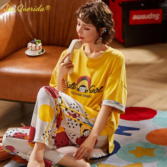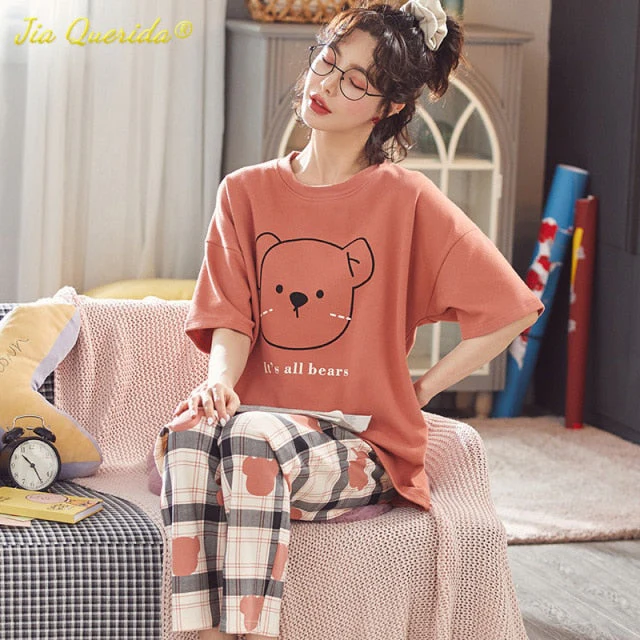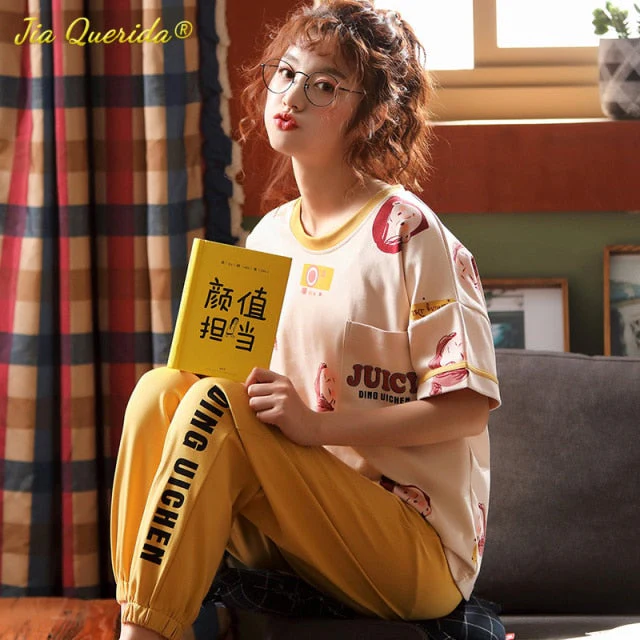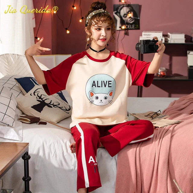 deanwangkt Women Sexy Sleepwear Cute Cartoon Print Short Set Pajamas Spicy Pepper Sweet Short Sleeve T Shirts Shorts Summer Pijama