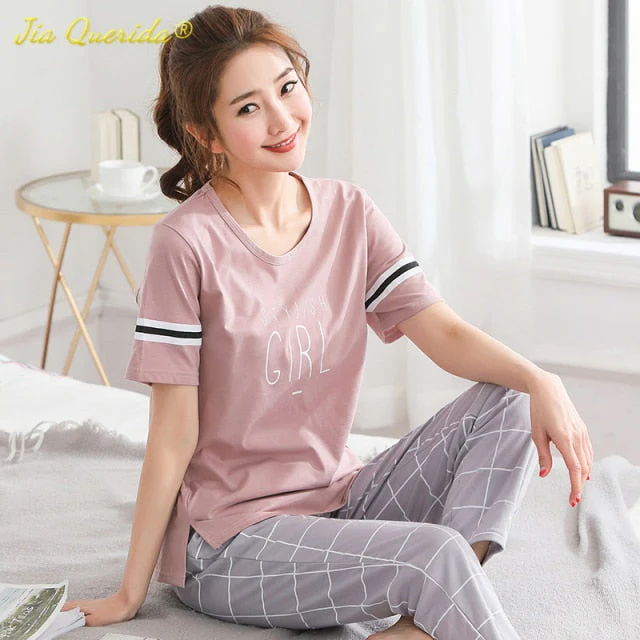 deanwangkt Pink Pajama Sets Women Sweet Casual Simple Design Stylish Japanese Style Lace-up Print Summer Home Lounge Wear Cozy Breathable