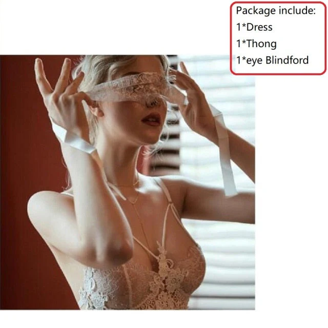 deanwangkt New Cute Sexy Lace Deep V-neck Open Back Long Sleeve Mini Nightdress Underwer Black and White Sleepwear Set Sleeping Dress
