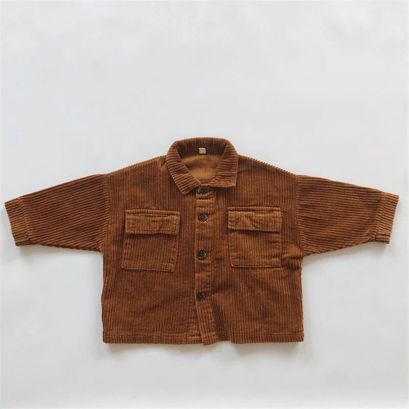 Children's Retro Fashion Jacket Spring Autumn Kids Casual Single Breasted Outerwear Solid Corduroy Jacket For Boys and Girls