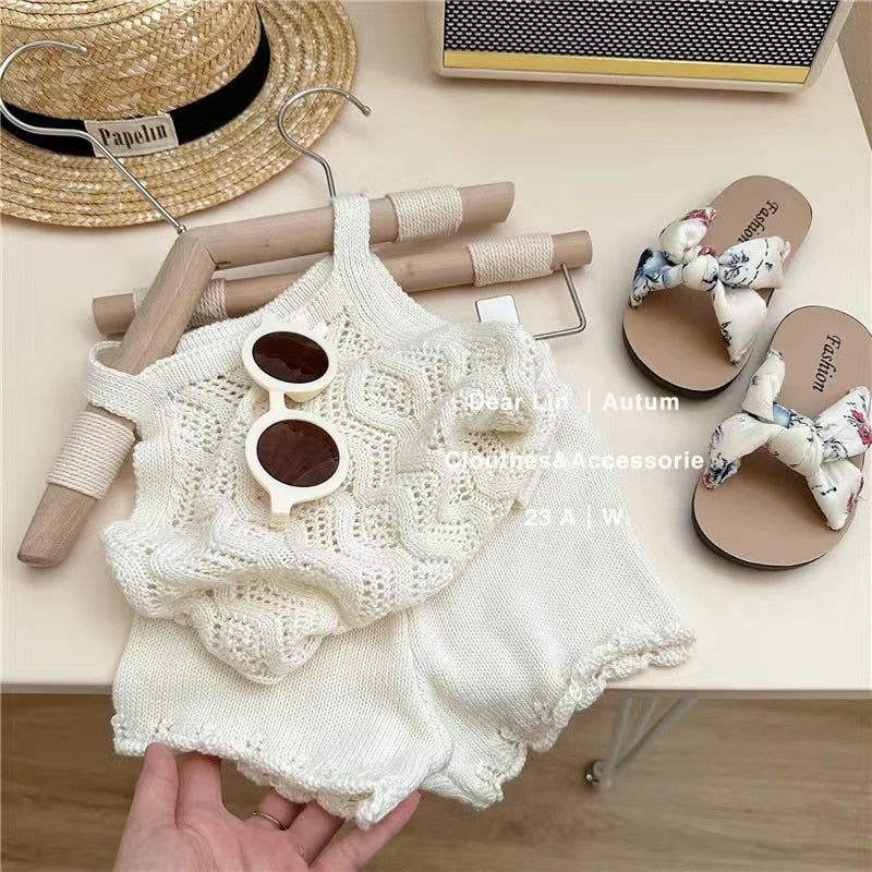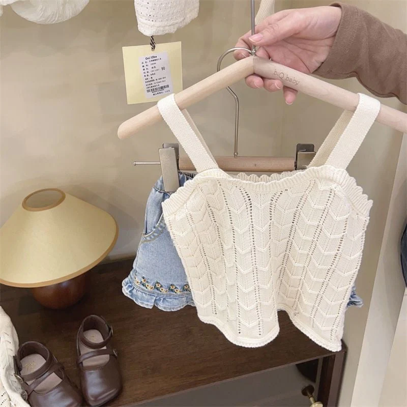 Summer Baby Girl Outfit Set New Born Baby Girl Clothes 2 Pcs Vest Pant Fashion Print Kids Denim Shorts Korea Style