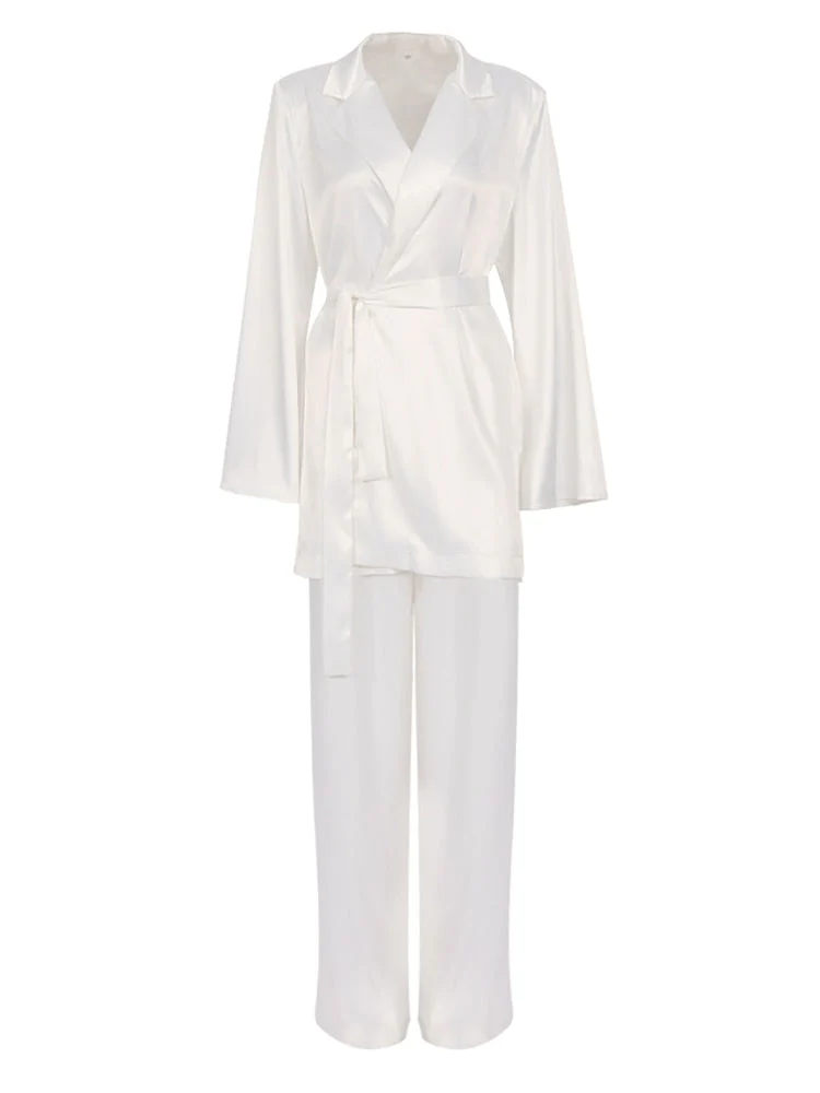 DEANWANGKT Women New Autumn Lapel Collar Blazer Coat & Drawstring Pants Set Long Leggings Suit Elegant 2 Piece Jacket Outfits